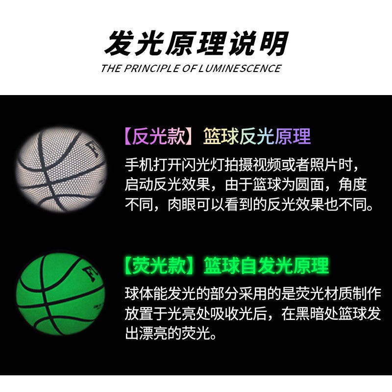 Reflective Luminous Luminous Basketball No.7 Adult Soft Leather Sweat-absorbing PU Material Basketball反光发光夜光标准比赛篮球