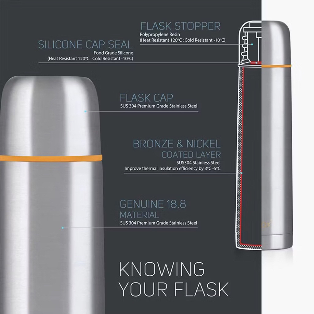 Relax Classic Stainless Steel Thermal Flask Free bag Pouch vacuum thermos bekas air panas 1 year warranty