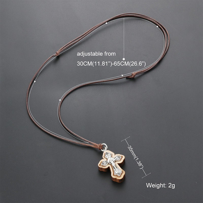 Religious Catholic Jesus Wooden Cross Pendant Necklaces Adjustable Rope Chains