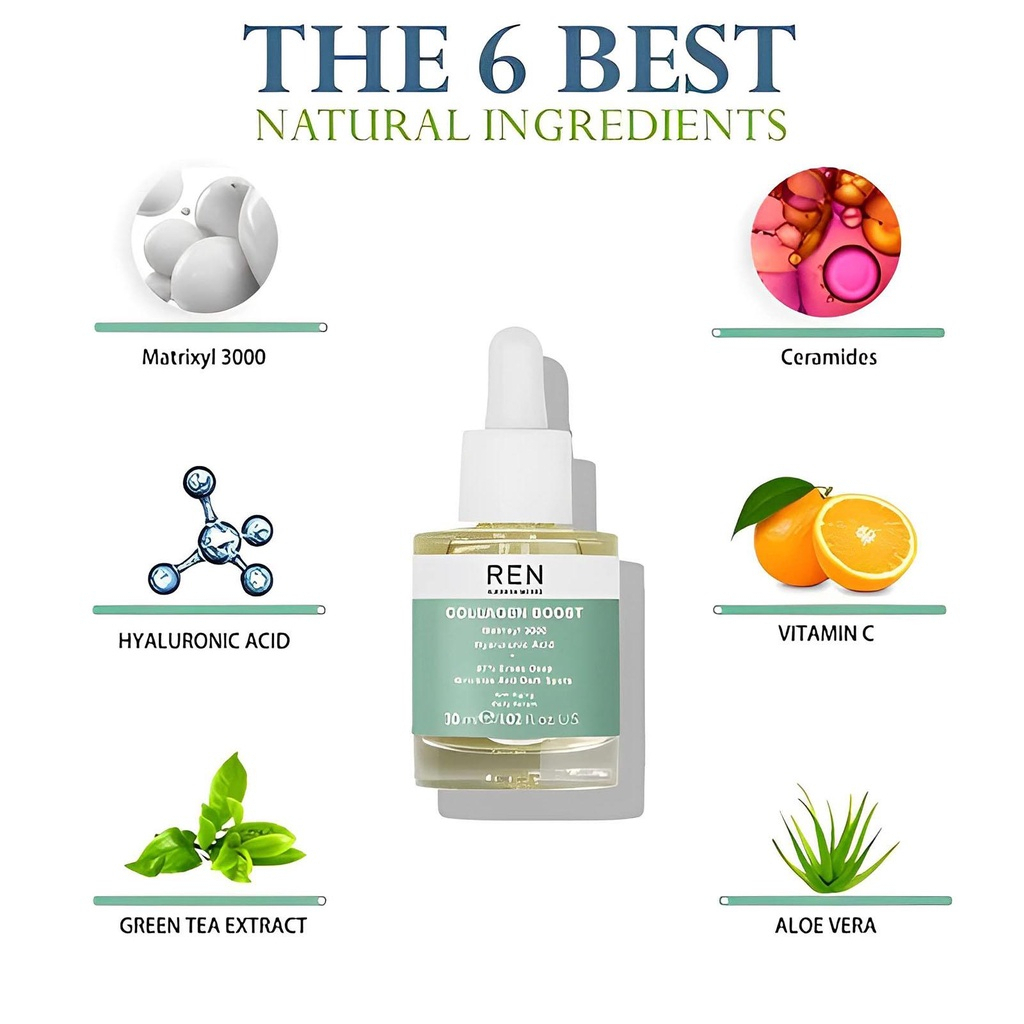 REN Collagen Boost Anti Aging Serum Reduces Wrinkles Fine Lines Moisturizing 30ml