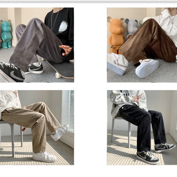 Retro Brown High Street ins Street Wear Corduroy Wide Leg Casual Trousers Men