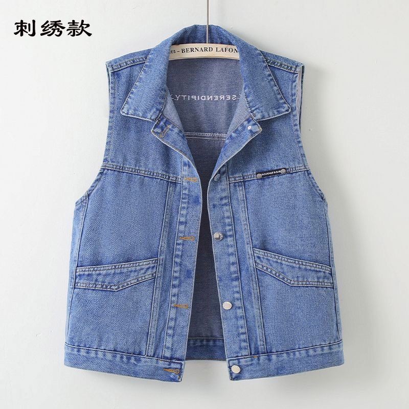 Retro Denim Vest Jacket Female Adult New Loose All-Match Sleeveless Vest Waistcoat Outer Top