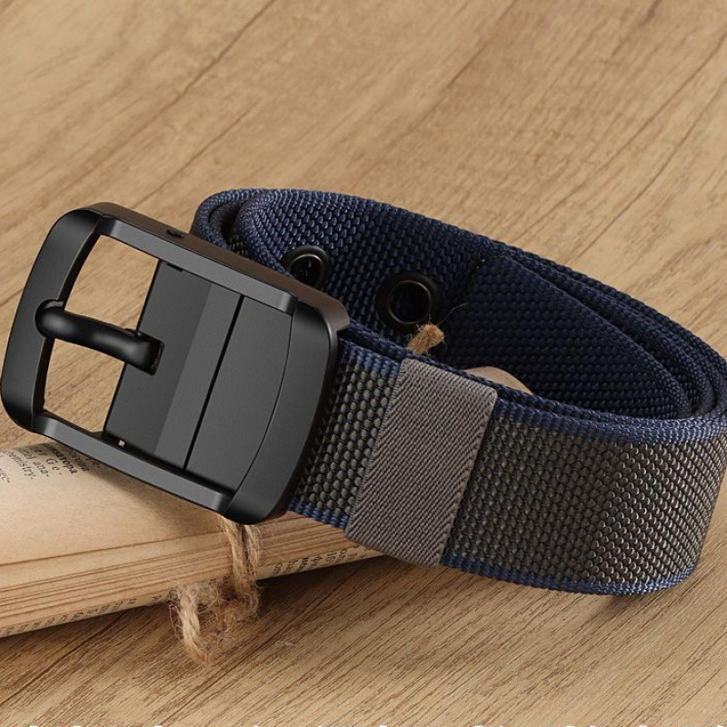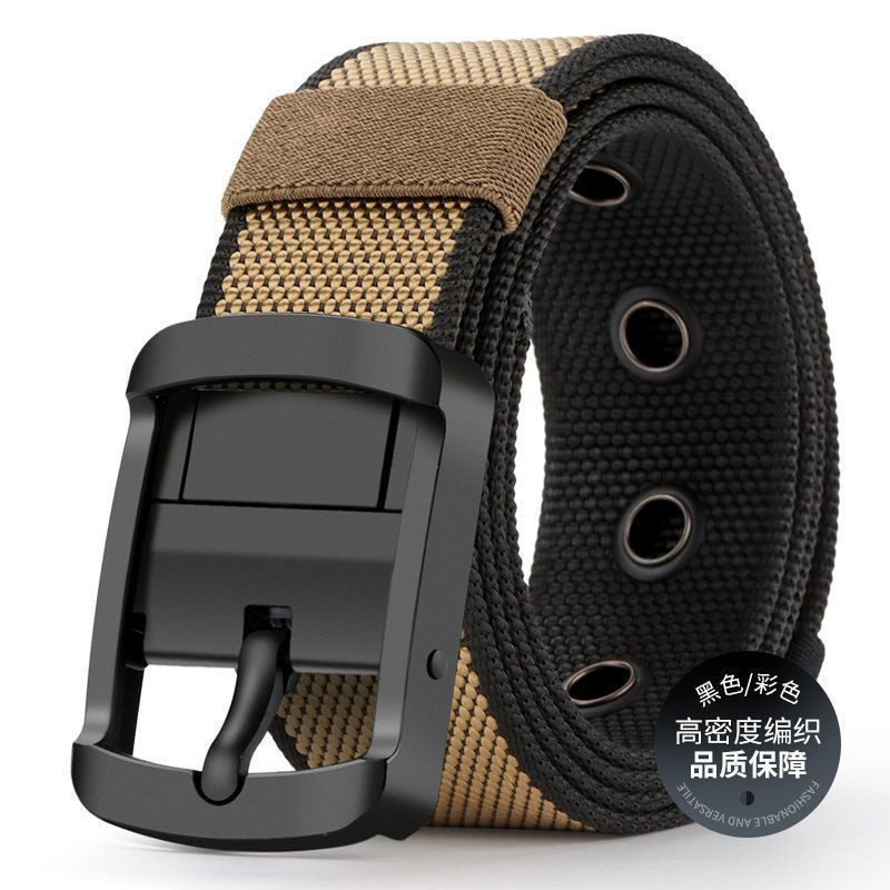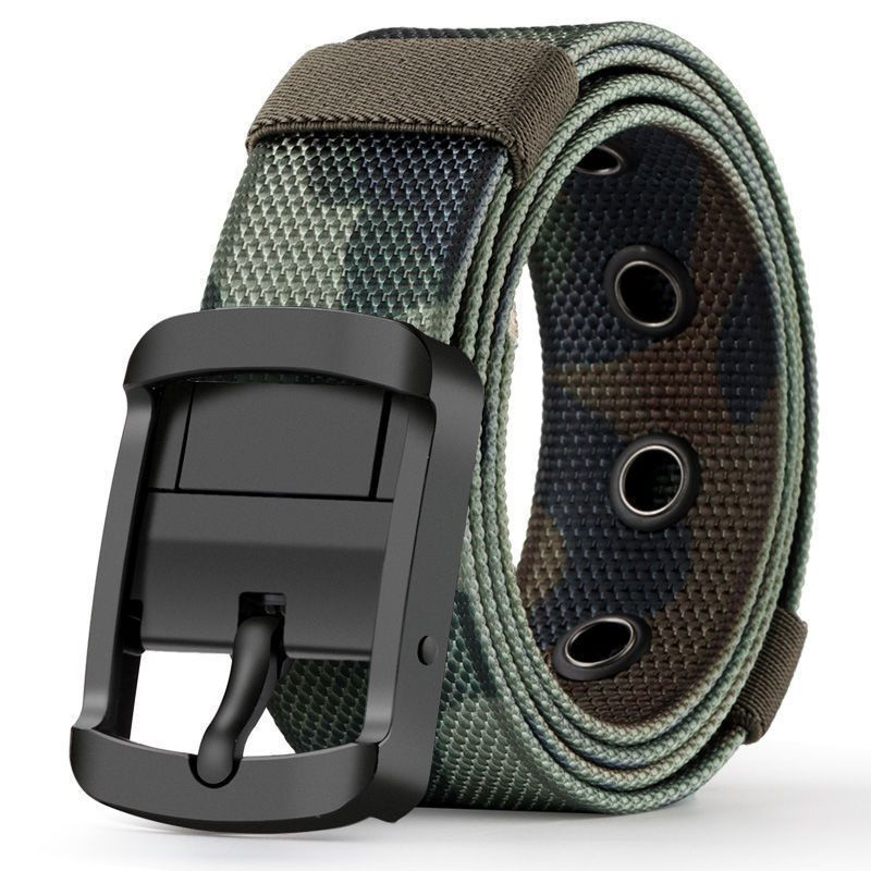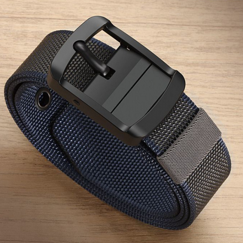 Reversible Thickened Belt for Men, Casual Stainless Steel Rotating Buckle, Nylon Weave Tactical Extra-Long Belt