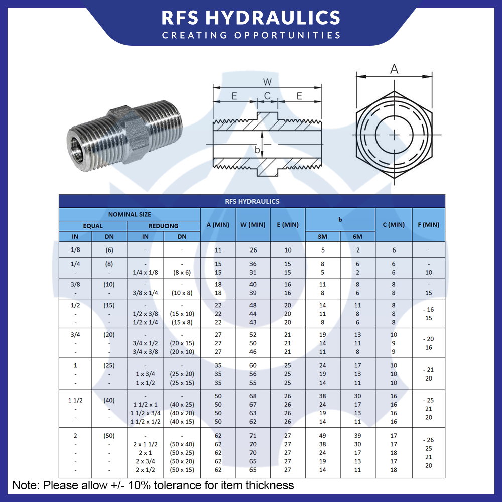 RFS Carbon Steel A105, 1/8" to 2"NPT Male Hex Nipple, 6000 PSI, Forged Pipe Fitting