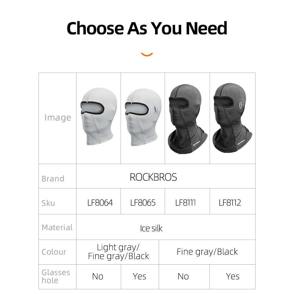ROCKBROS Bike Mask Face Mask Summer Breathable Sun UV Protection Balaclava Glasses Hole Men Women Quick-Drying Mask Reusable