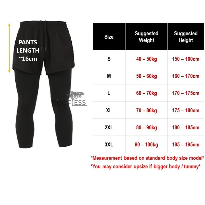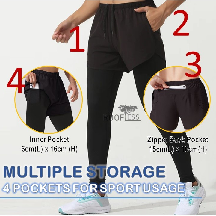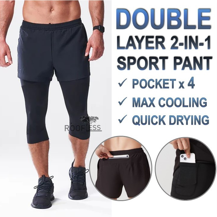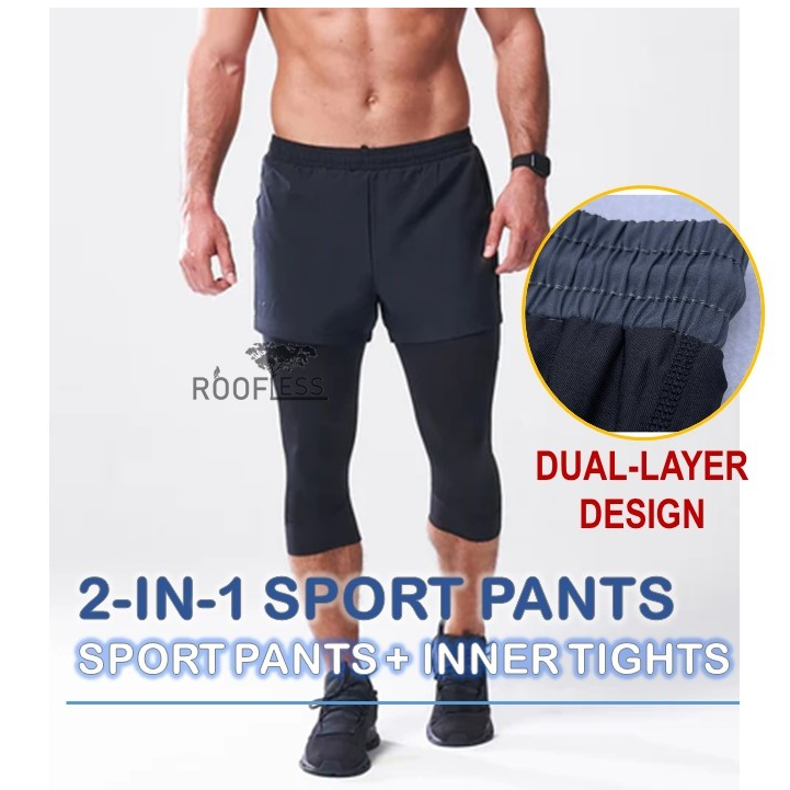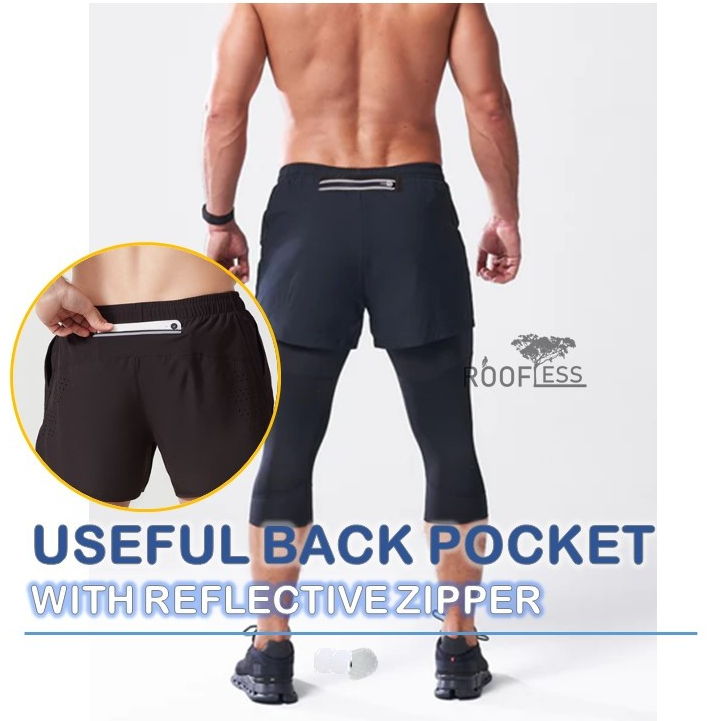 ROOFLESS Running Pants Seluar Running Lelaki 3 Suku Running Pants Men Seluar Sukan Lelaki Seluar Tight Lelaki 3 Suku