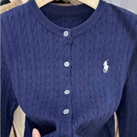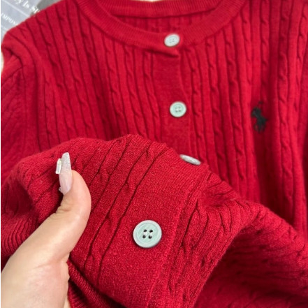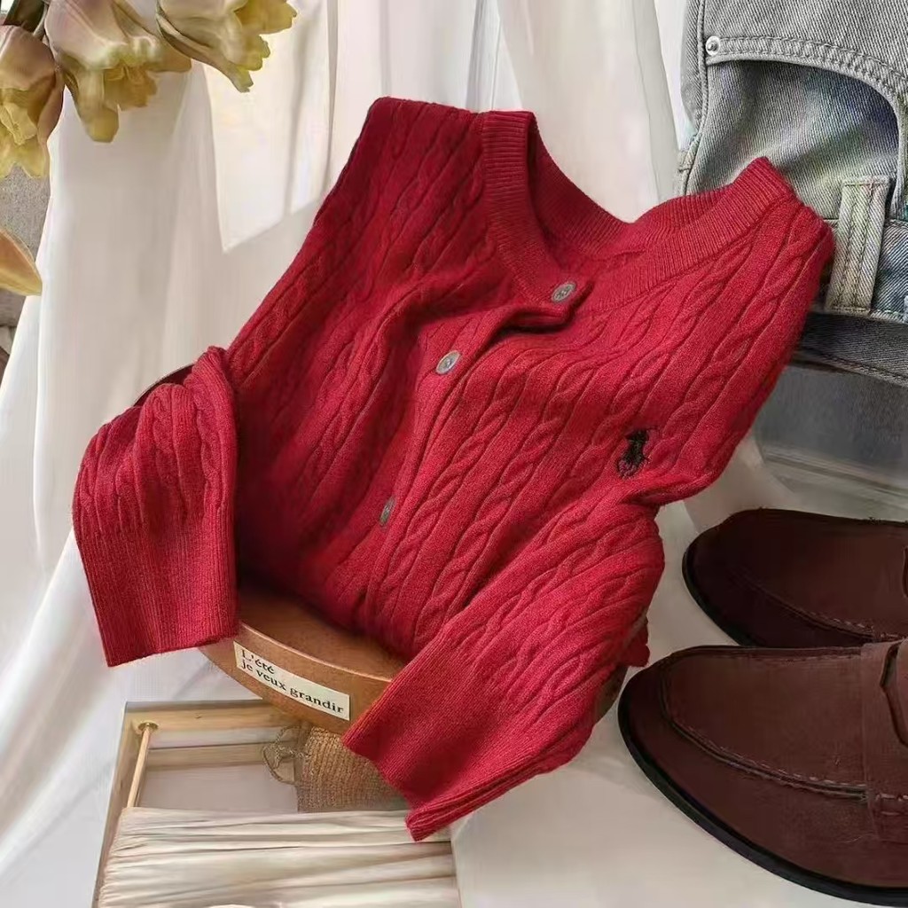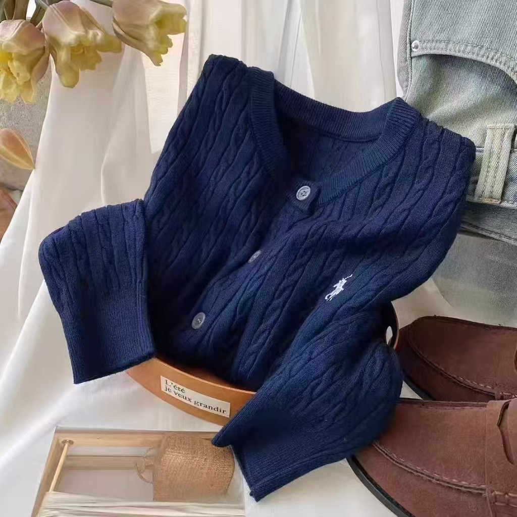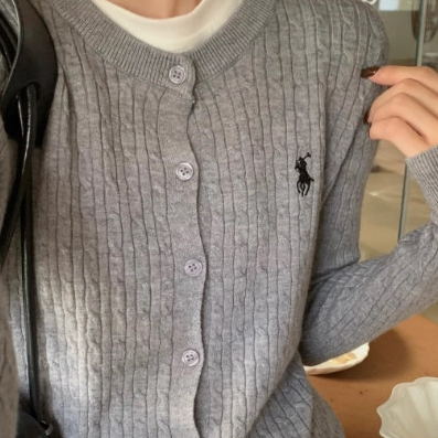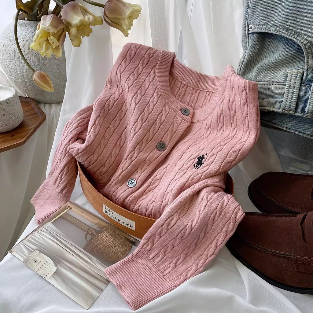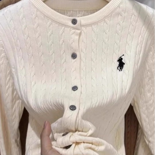 Round Neck Pony Embroidery Age-Reducing Twist Knit Cardigan