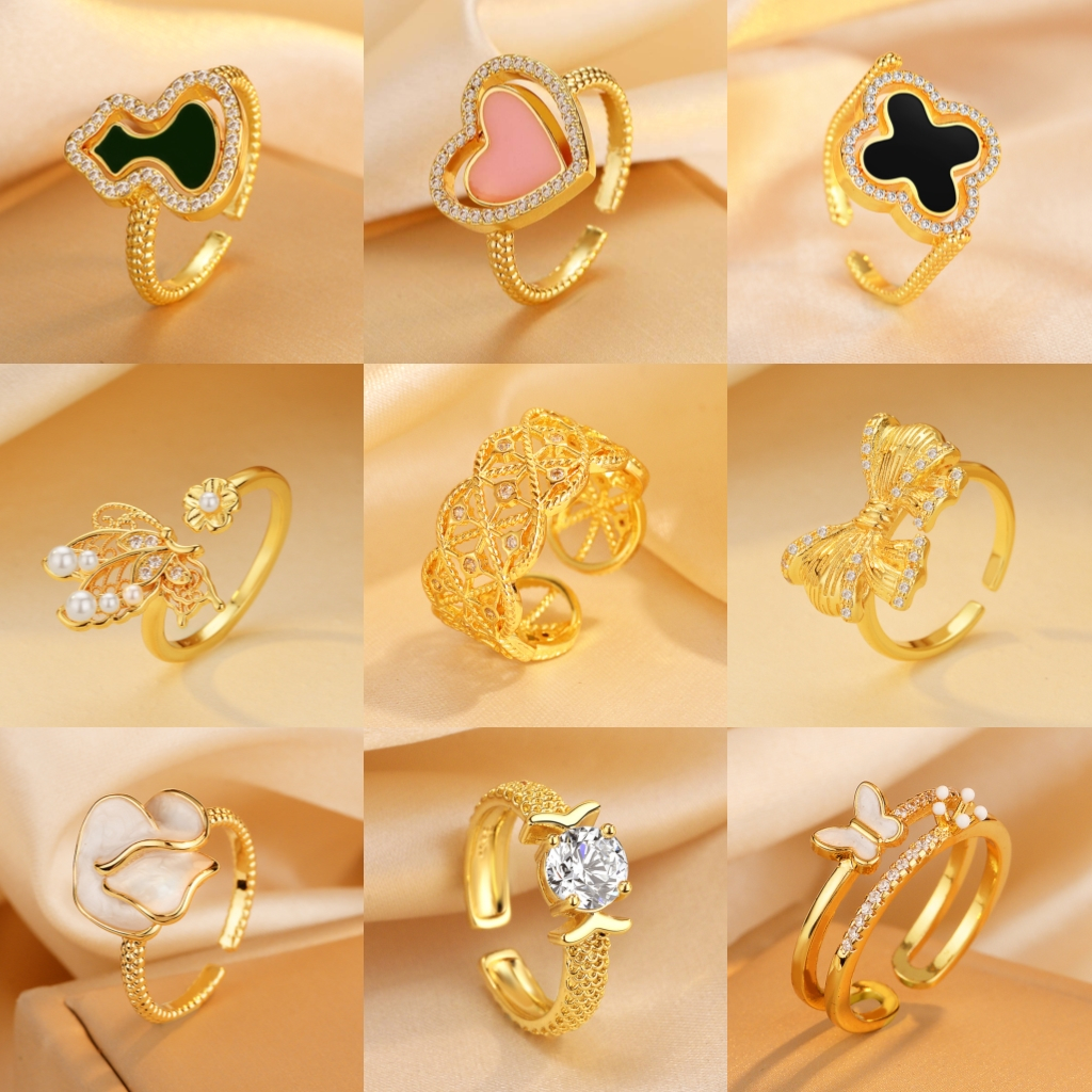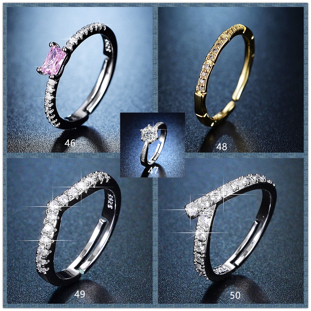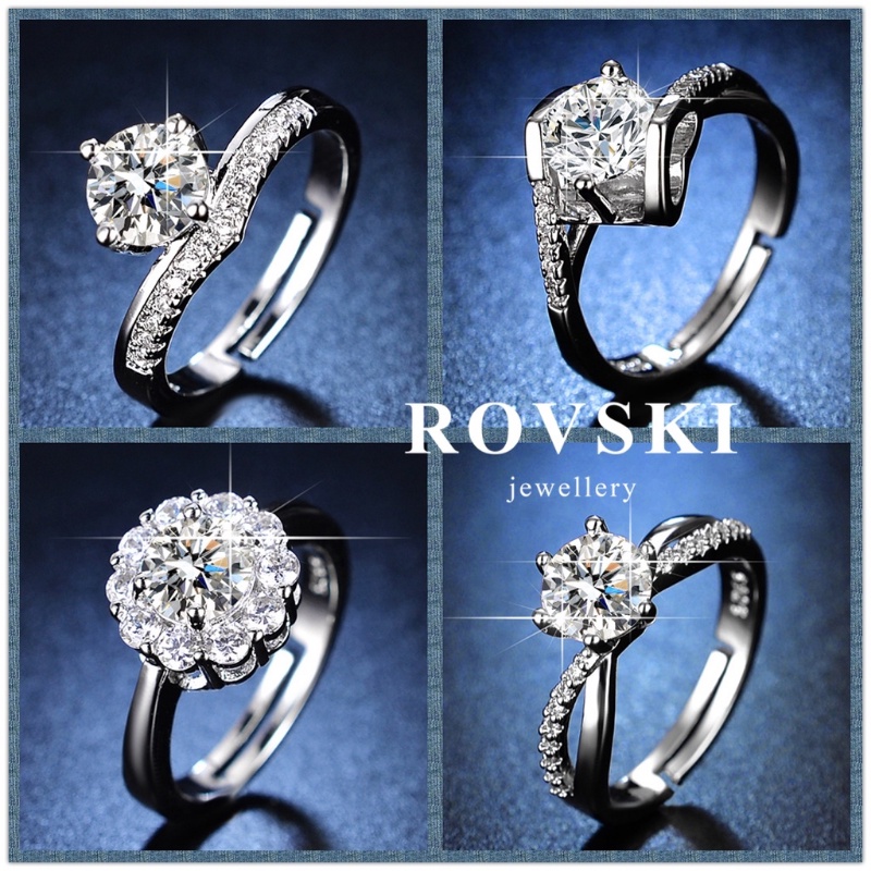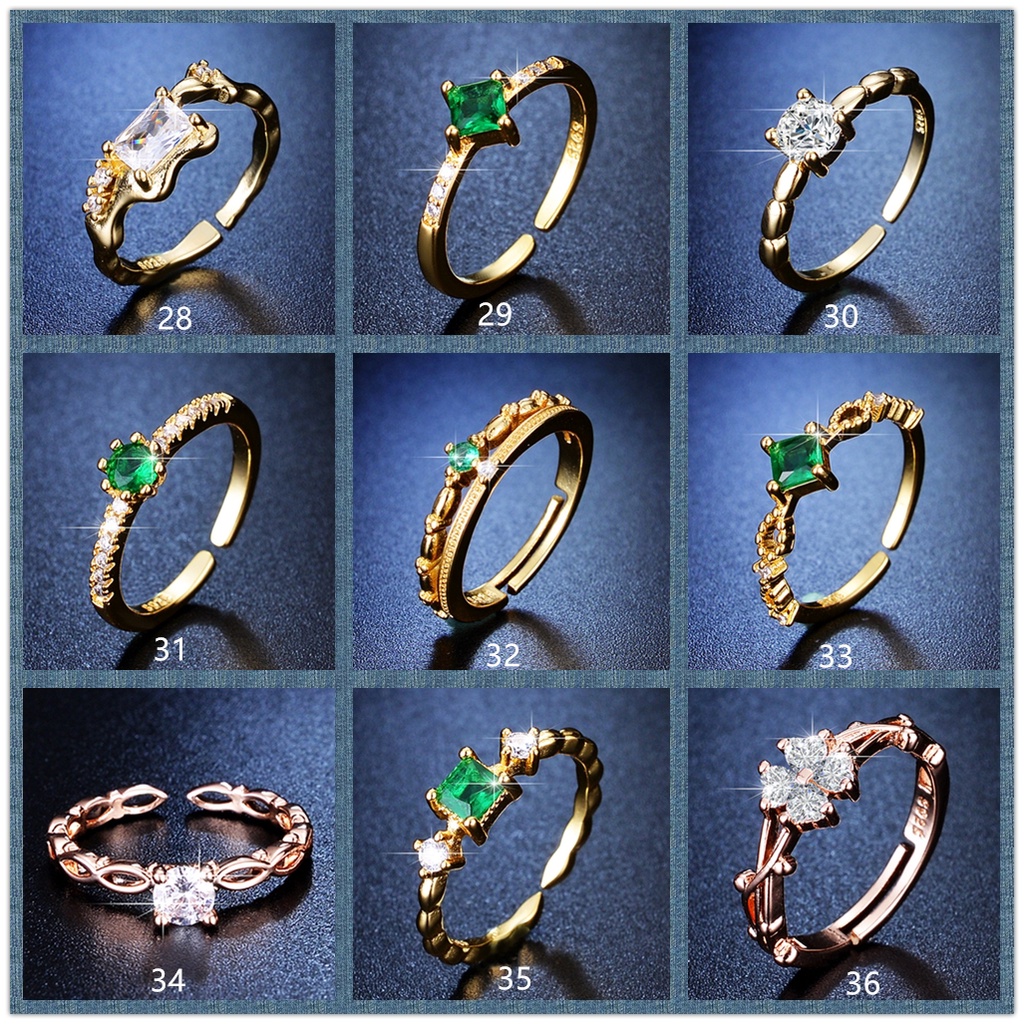 ROVSKI Raya Fashion Korean Ready Stock Jewelry 100 Designs Silver S925 Ring Cincin Original Perak Perempuan Women Gold Plated Emerald Diamond Adjustable Rings