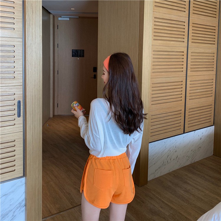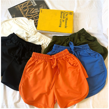 S-2XL 23"-33" Korean Style Women High Waist Short Woven Tie Back Pockets Casual Sports Pants Seluar Pendek Wanita