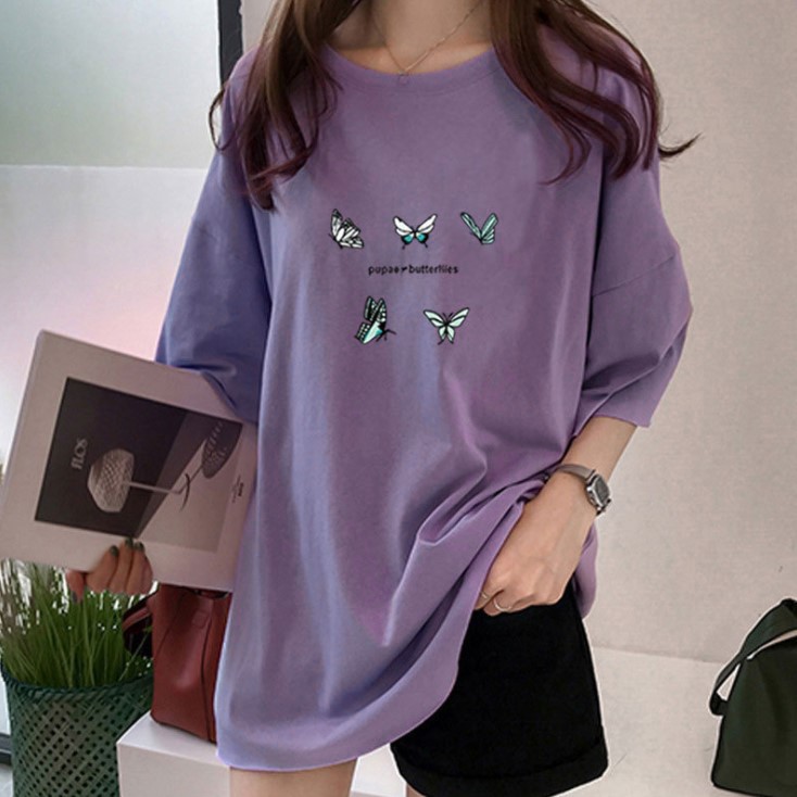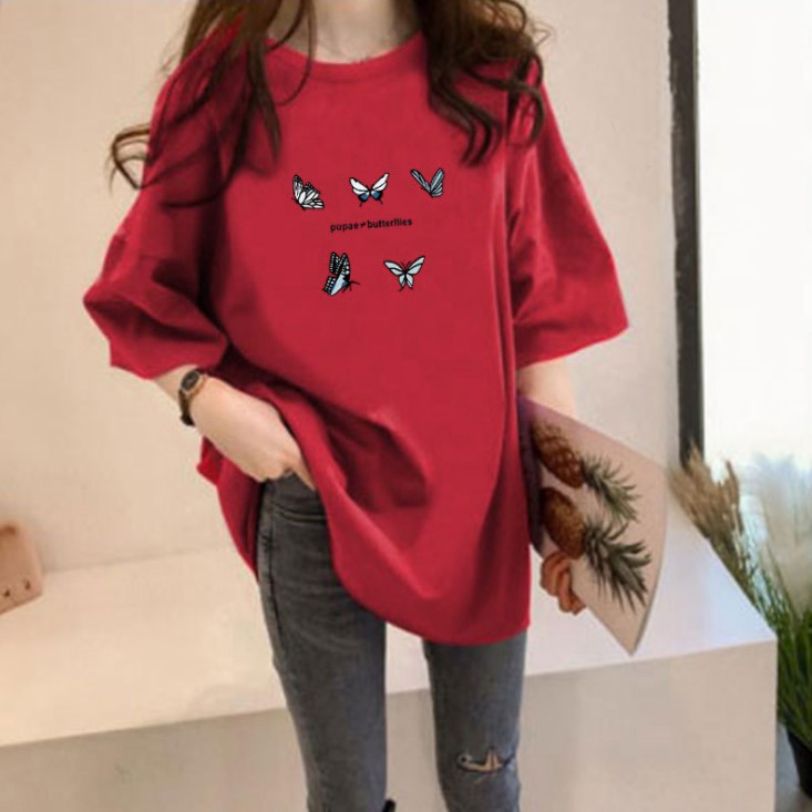 [S-5XL][Lamoda]BUTTERFLY 5XL Tops summer clothes figure butterfly printing loose short sleeve
