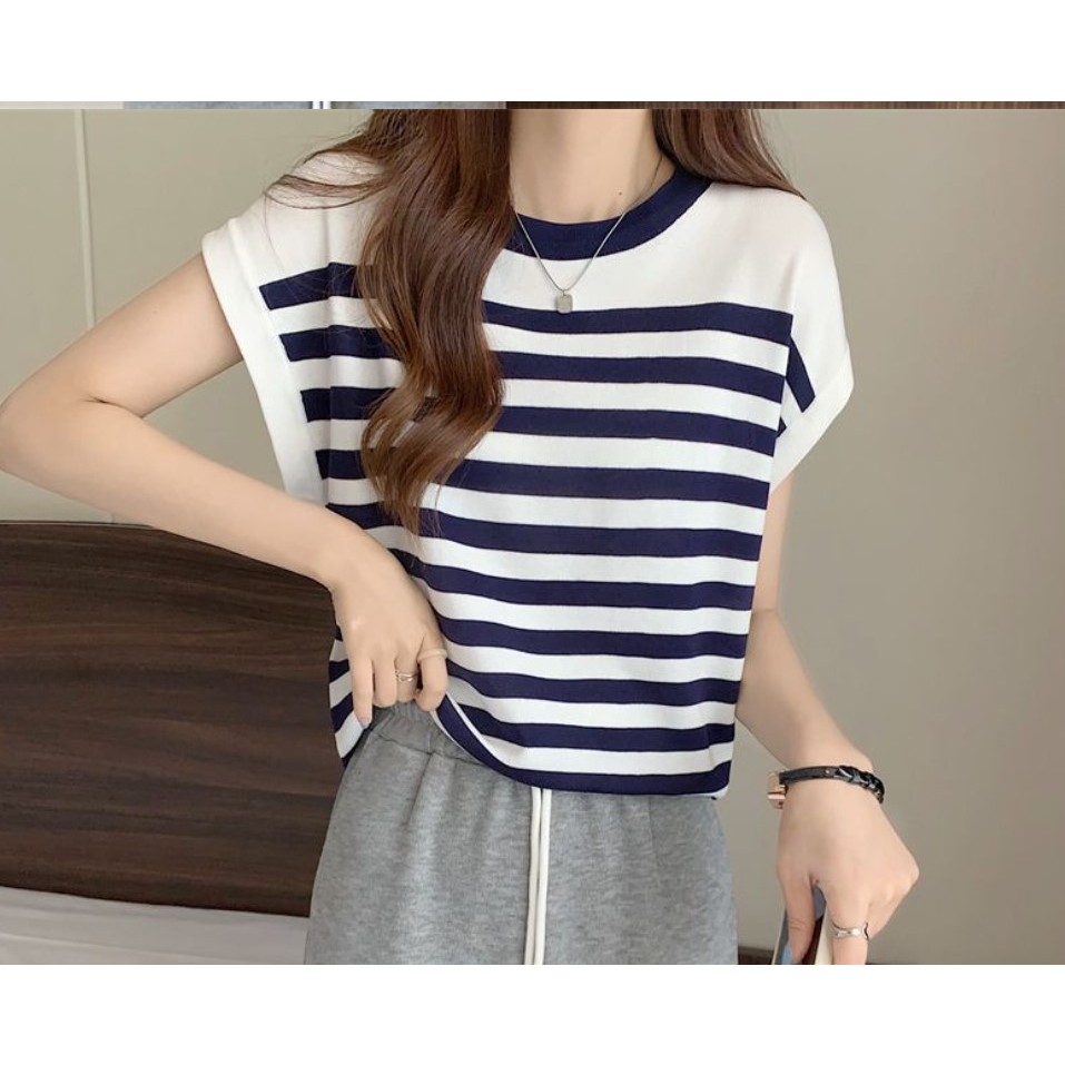 SA0569 -M'SIA Stok Sedia Fesyen Baju Wanita.Ready Stock Knitted Material Women Top Women 条纹针织短袖T恤