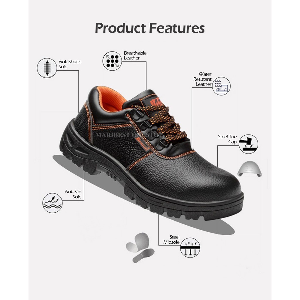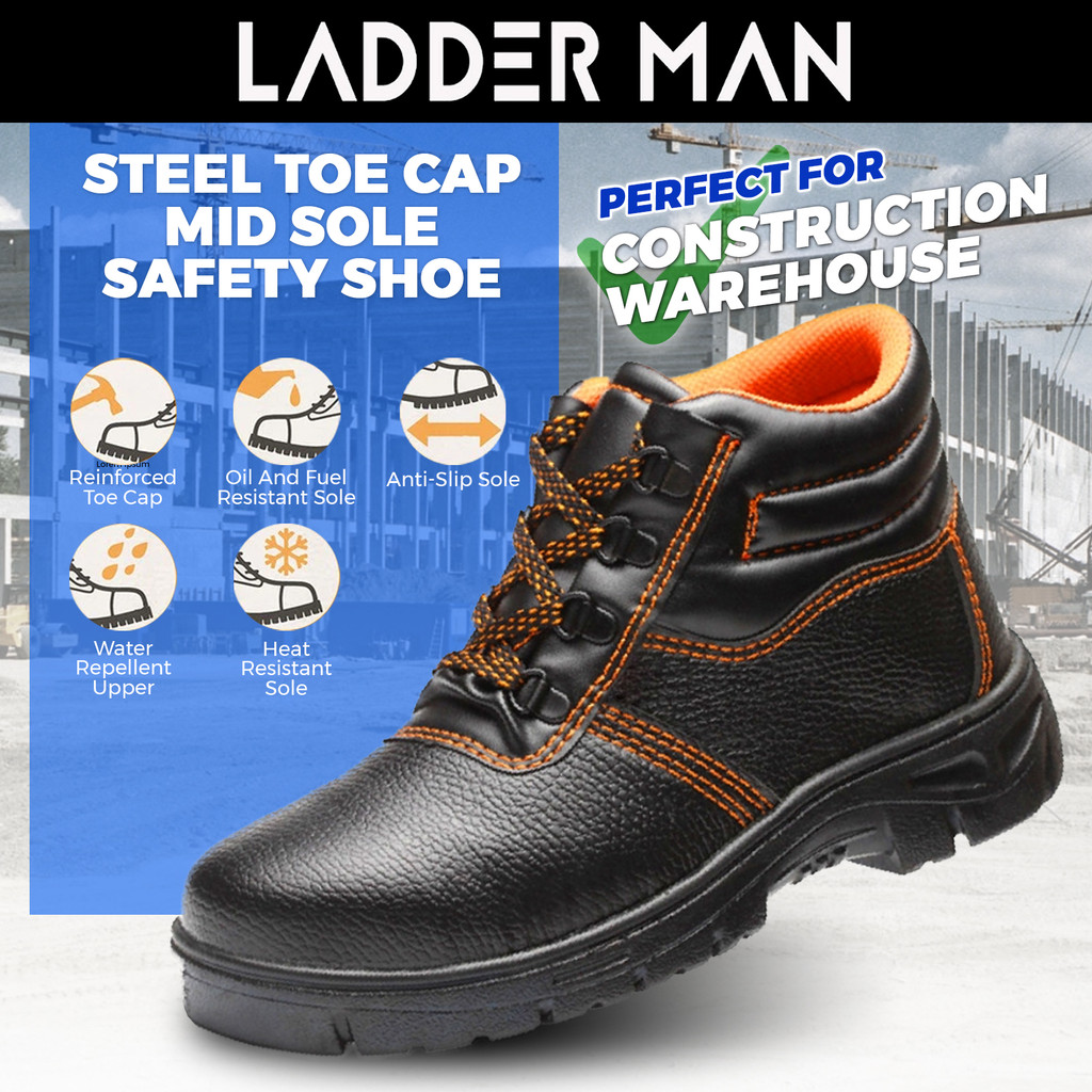Safety Shoes Steel Toe Cap Mid Sole Medium OR Low Cut Safety Boots Black (RANDOM RED/ORANGE LINING) Kasut Keselamatan安全鞋