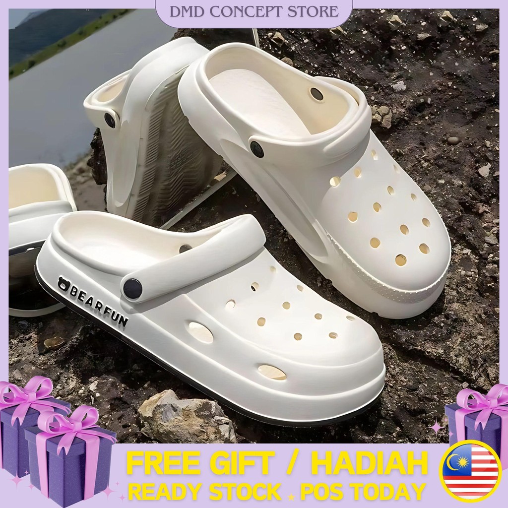 Sandal Sponge Cake Thick and Two Tone Sole Unisex Can Add On Accessories Kasut Lubang Tebal Tapak 5105 洞洞鞋