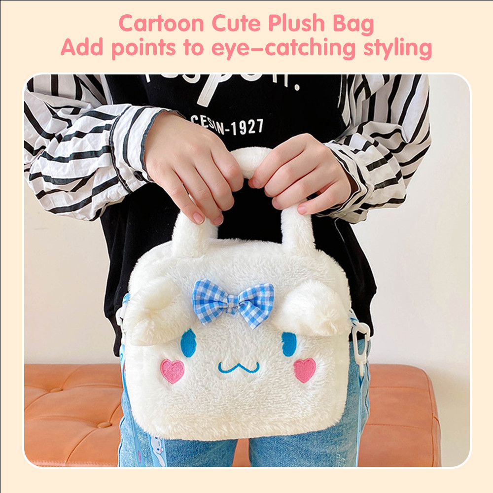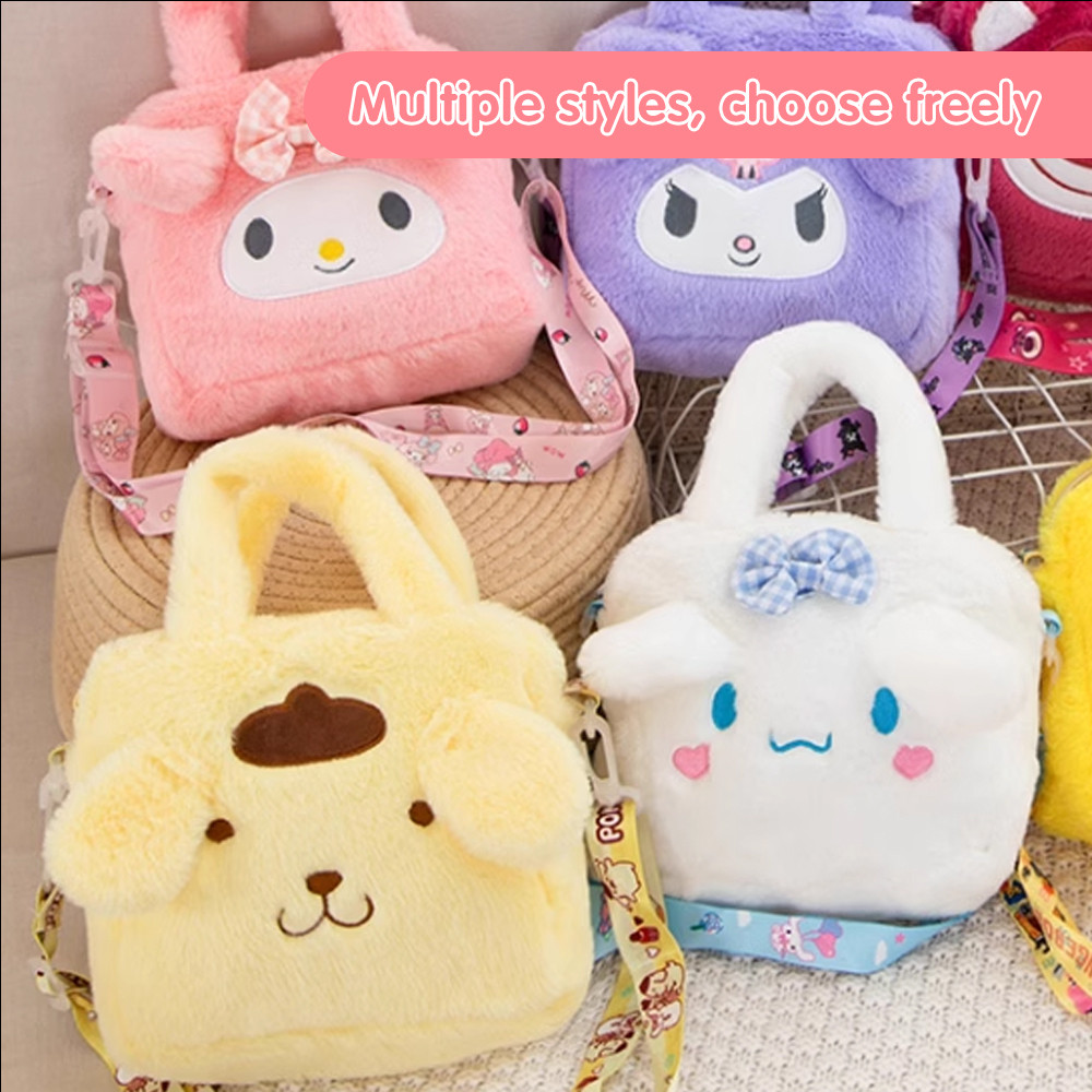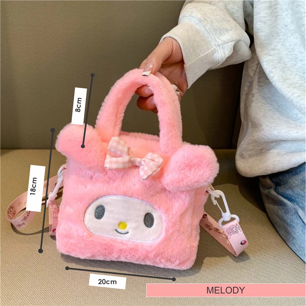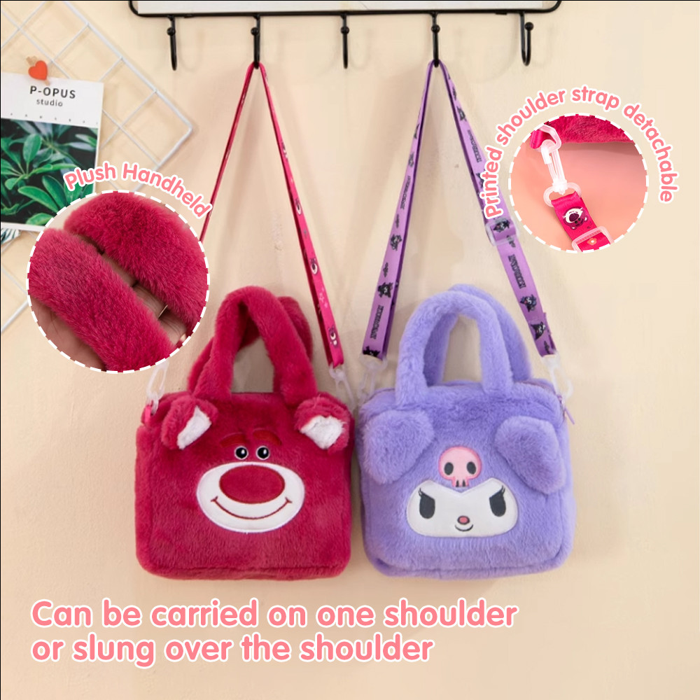 Sanrio Fluffy Crossbody Bag – Cute Kuromi & Melody Plush Shoulder Bag for Girls