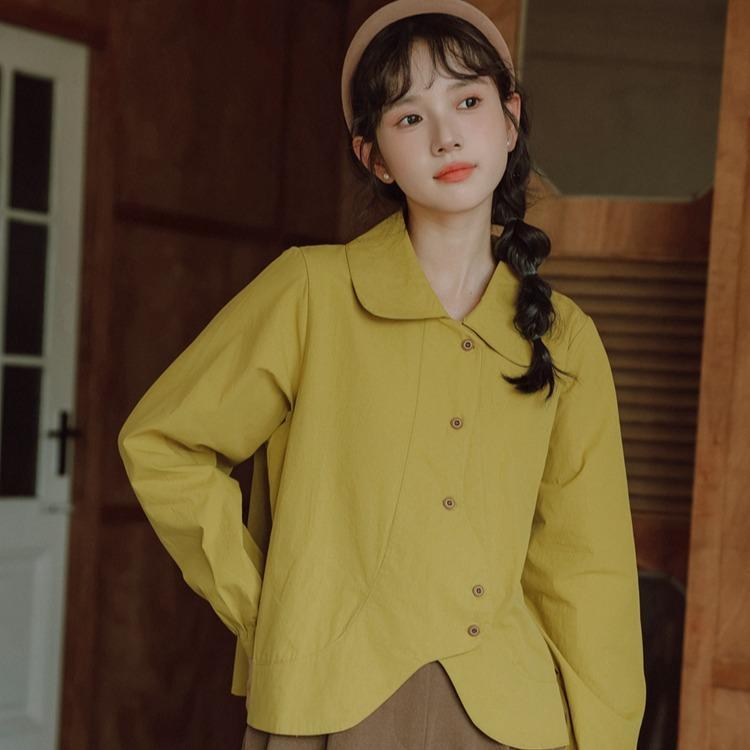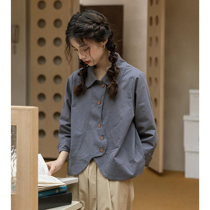 SARI CHIC Retro irregular button long-sleeved shirt short loose plus size cardigan top -99201