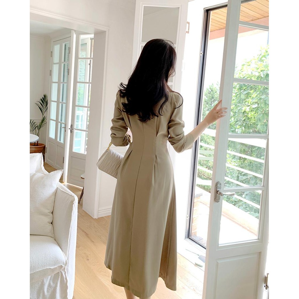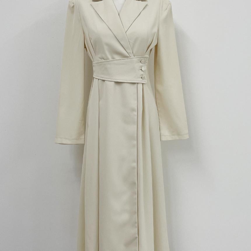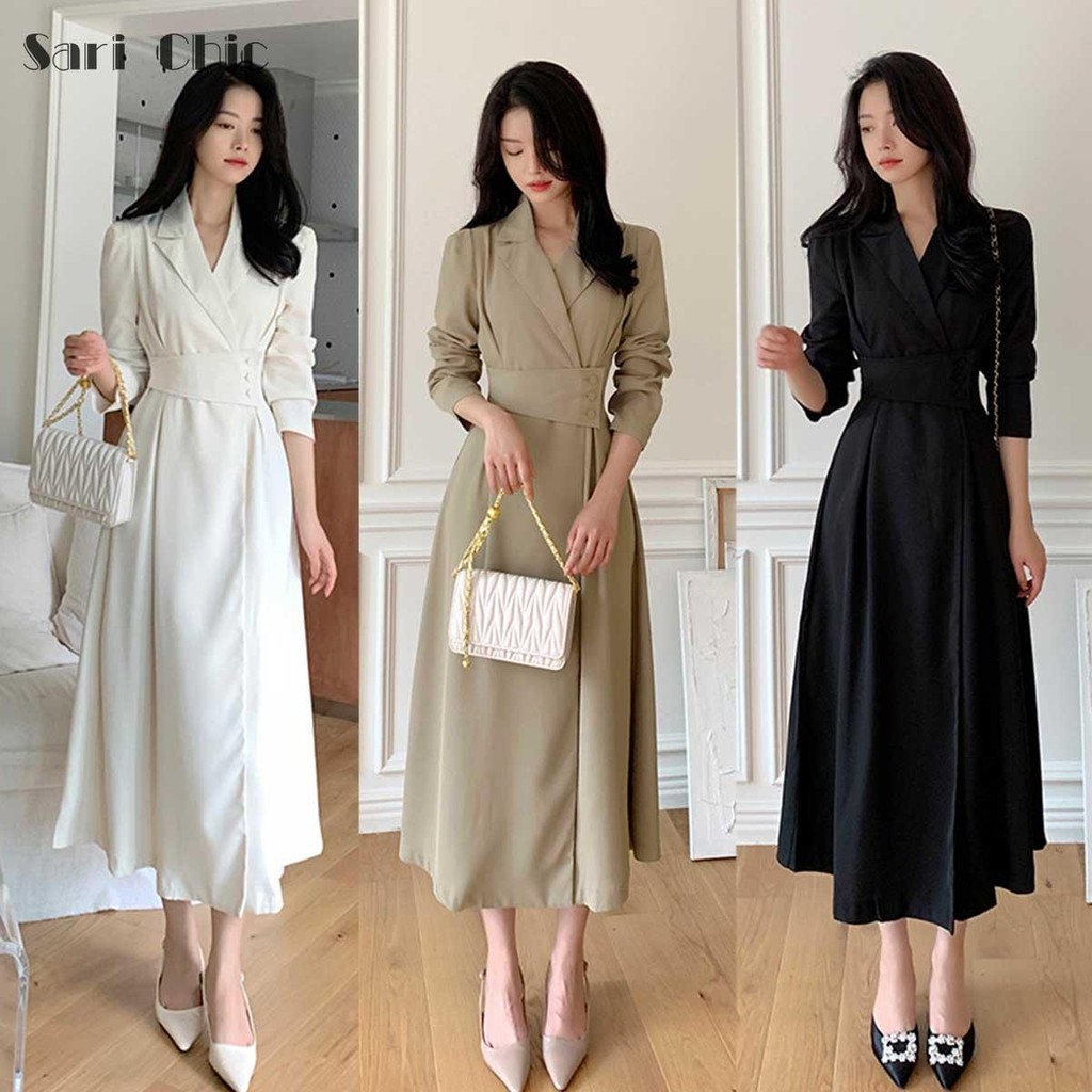 SARICHIC French Elegant Lapel Chic Button Waist Slim Fit Long Suit-Style Long Sleeve Dress for Women -99166
