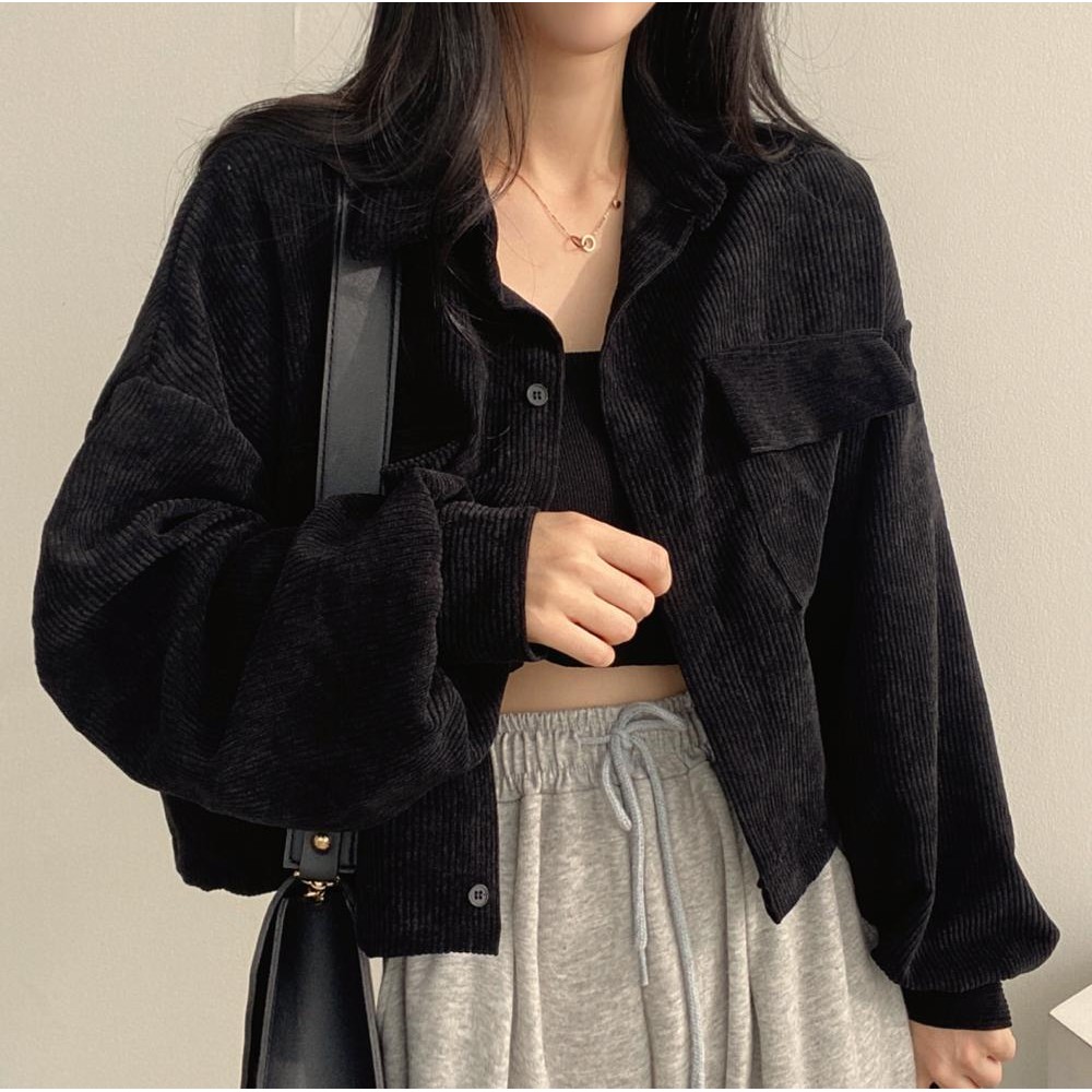 SARICHIC Korean Style Women Ladies Loose Long Sleeve Polyester Shirt Blouse Baju Wanita Lengan Panjang W273