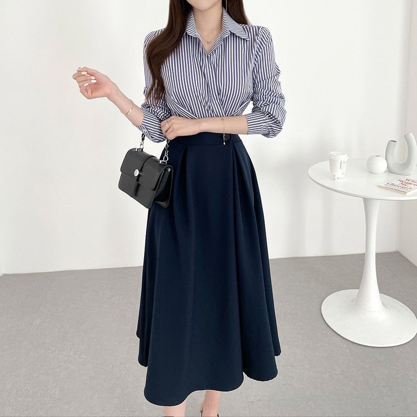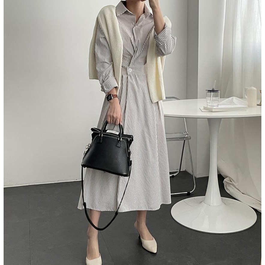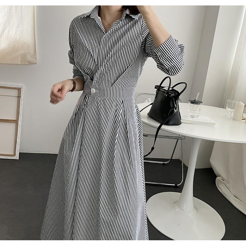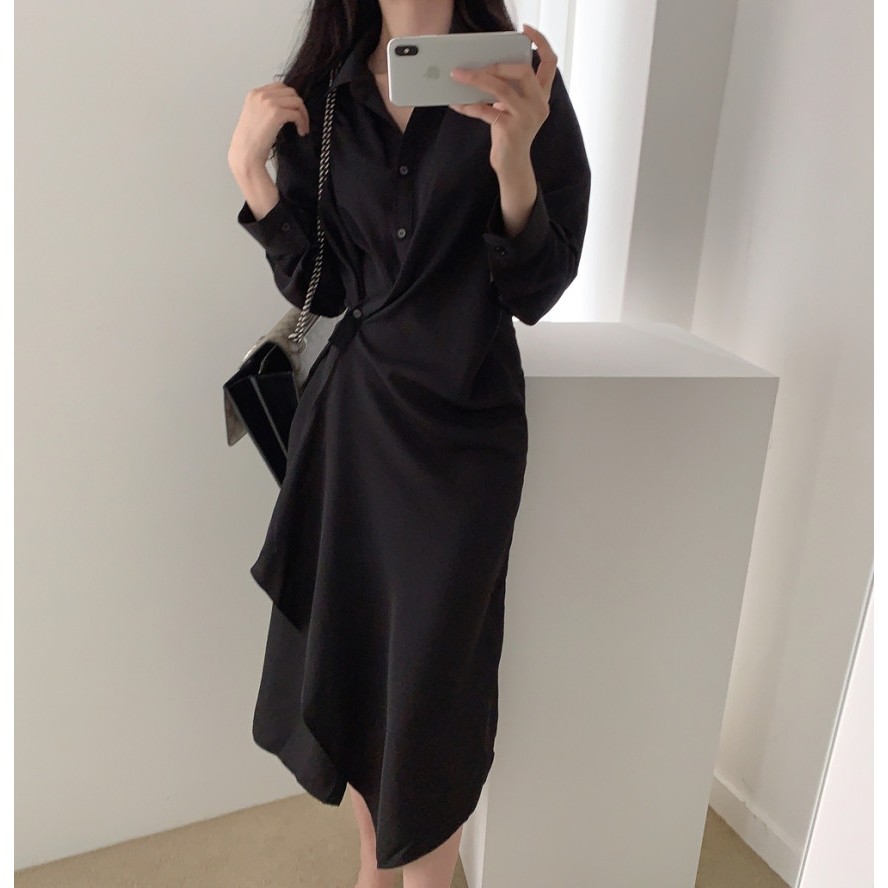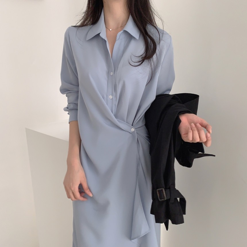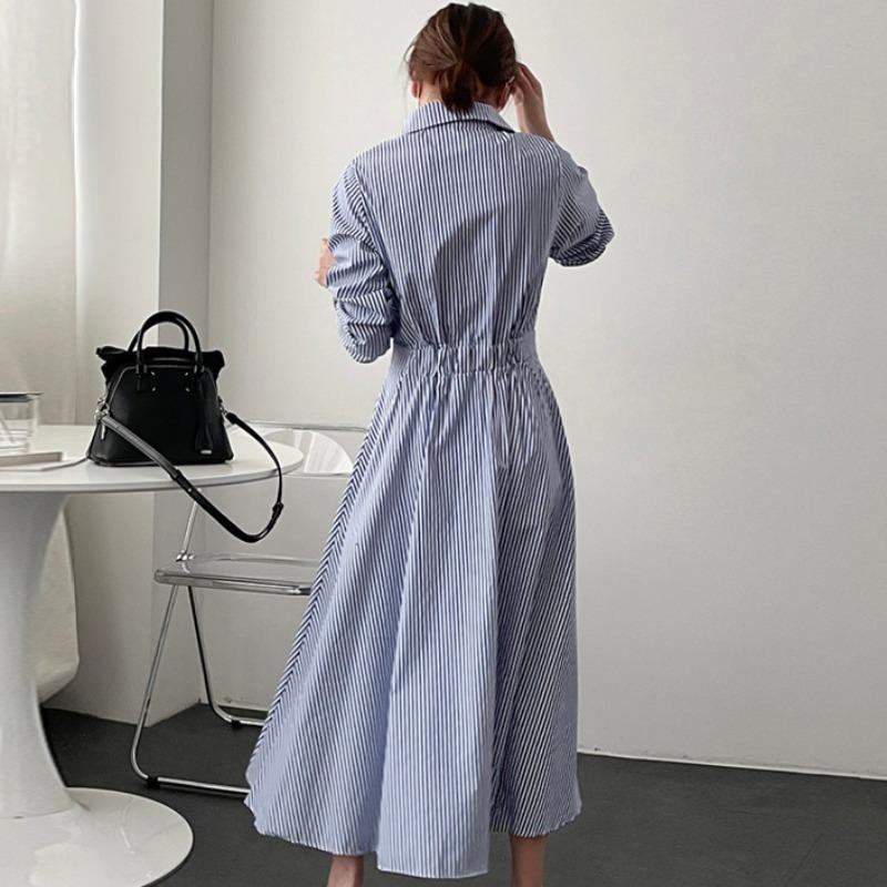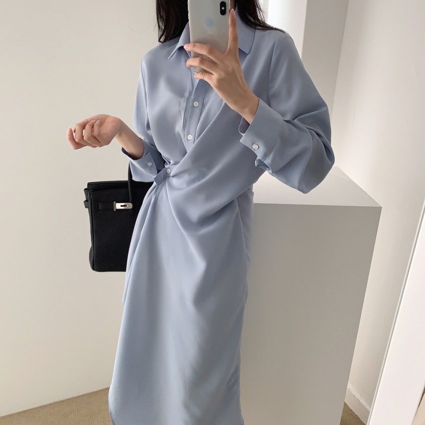SARICHIC Women Long Sleeve Turn-Down-Collar Solid Color High Waist Casual Maxi Dress -99075