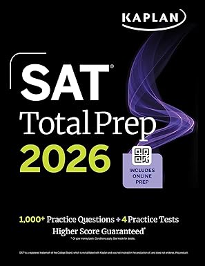 SAT Total Prep 2026: Includes 4 Full Length Practice Tests, 1,100+ Practice Questions + 1 Year Access to Online Quizzes and Video Lessons and Tutorials (Kaplan Test Prep)