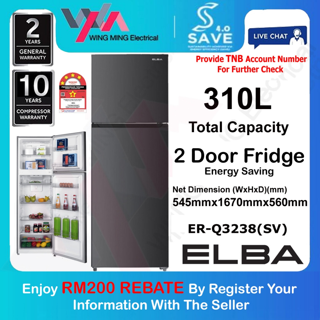 [ Save 4.0 ] Elba 2-Door Refrigerator 185L/250L/310L | Peti Ais Sejuk | Energy Saving Fridge | Peti Ais 2 Pintu |冰箱 SEDA