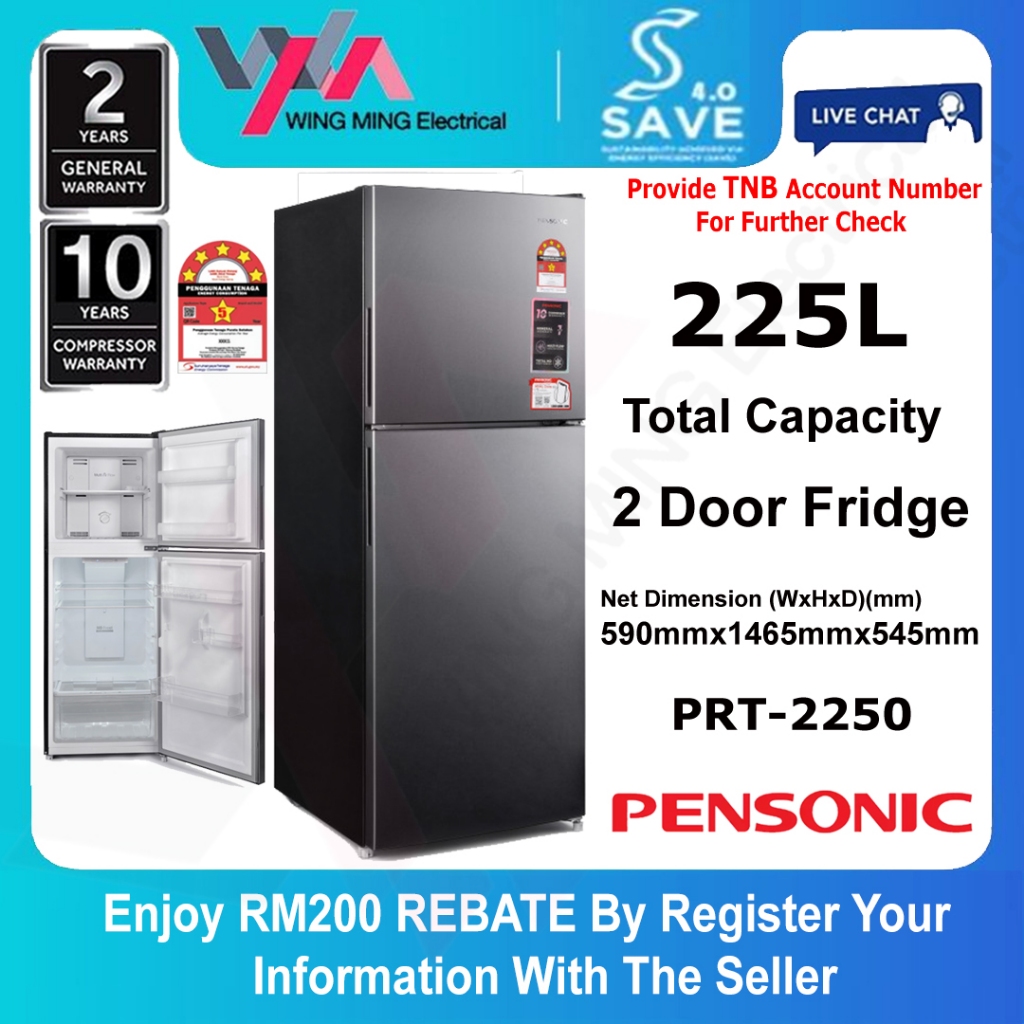 [ Save 4.0 ] Pensonic 225L Top Mount Refrigerator 2 Door/Peti Ais 2 Pintu Inverter (PRT-2250) /Fridge/冰箱 /Peti Sejuk