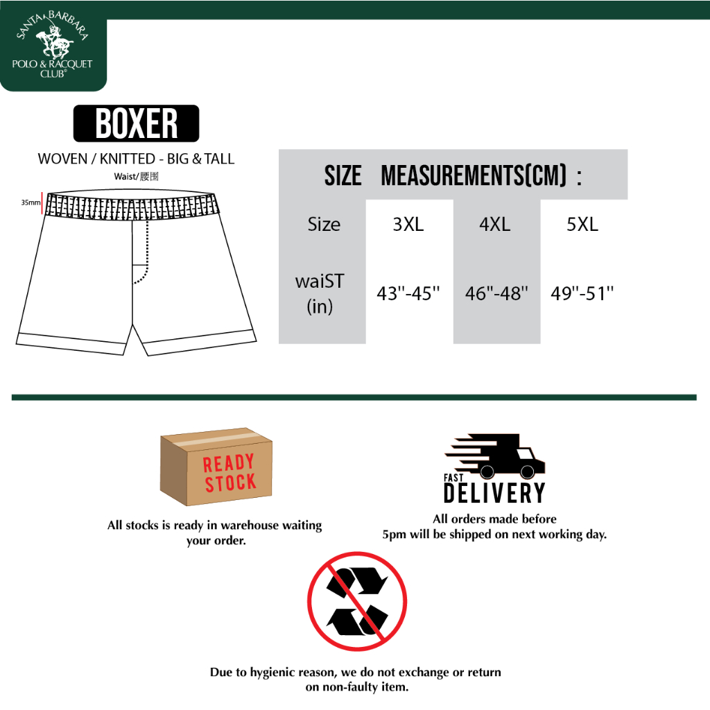 SBPRC Men Underwear 100% Cotton Big & Tall Knitted Boxer 319 Assorted Colour Value Buy Seluar Dalam Sukan Lelaki 3 helai