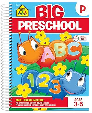 School Zone Big Preschool Workbook: 320 Spiral-Bound Pages, Pre-K, Colors, Shapes, Numbers, Early Math, Alphabet, Pre-Writing, Phonics, Following Directions, Ages 3-5
