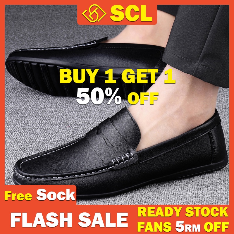 SCL Kasut Kulit Lelaki Men's Casual Loafer Boat Driving Shoes Slip On Loafer Lightweight Big Size 38-47