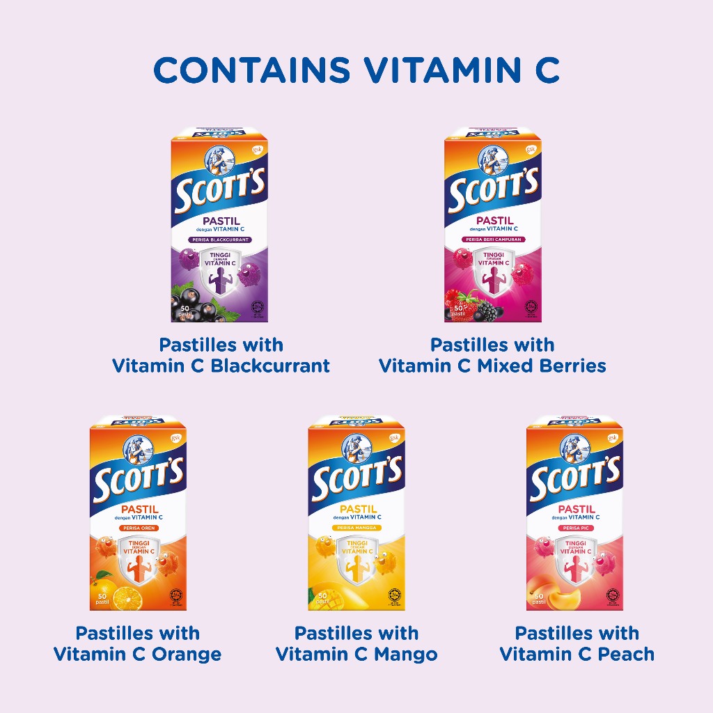 Scott's Vitamin C Pastilles Children Supplement - 4 Flavours (50 pastilles/100g)