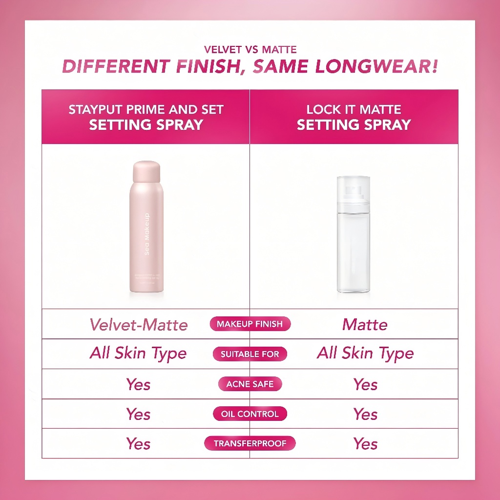 Sea Makeup Lock It Matte Acne fixing primer Setting Spray - Waterproof Transferproof Finish Oil Control Makeup Holding
