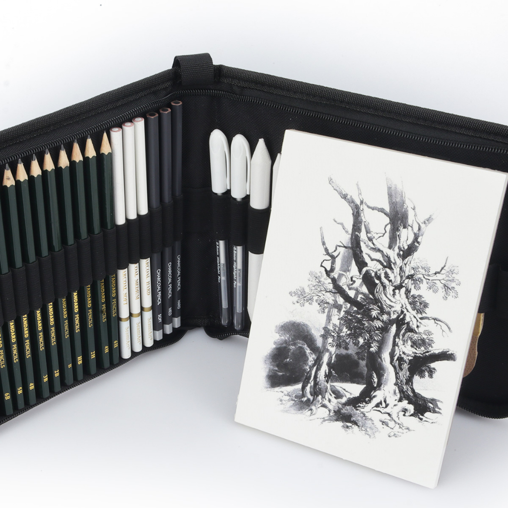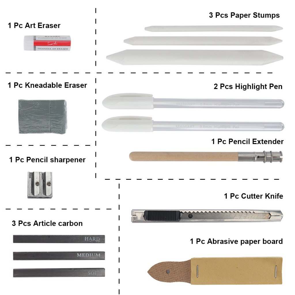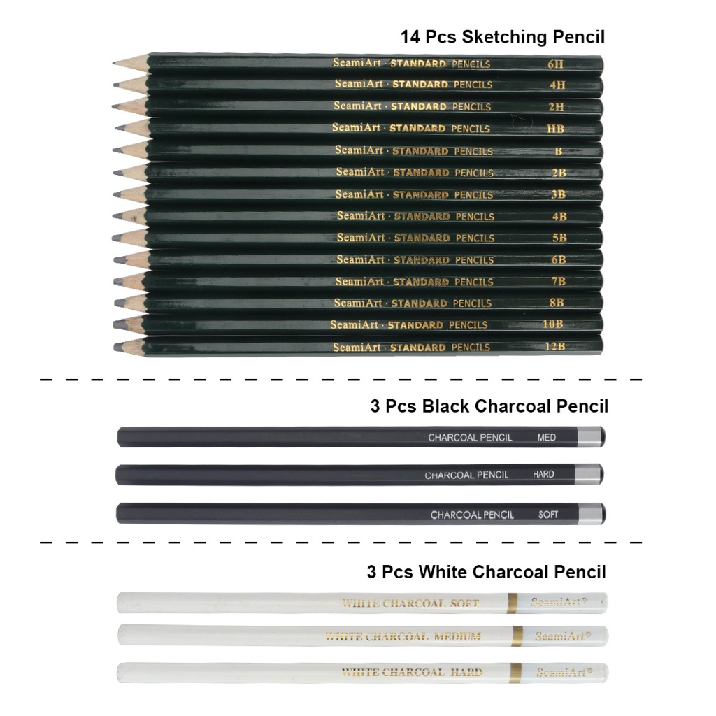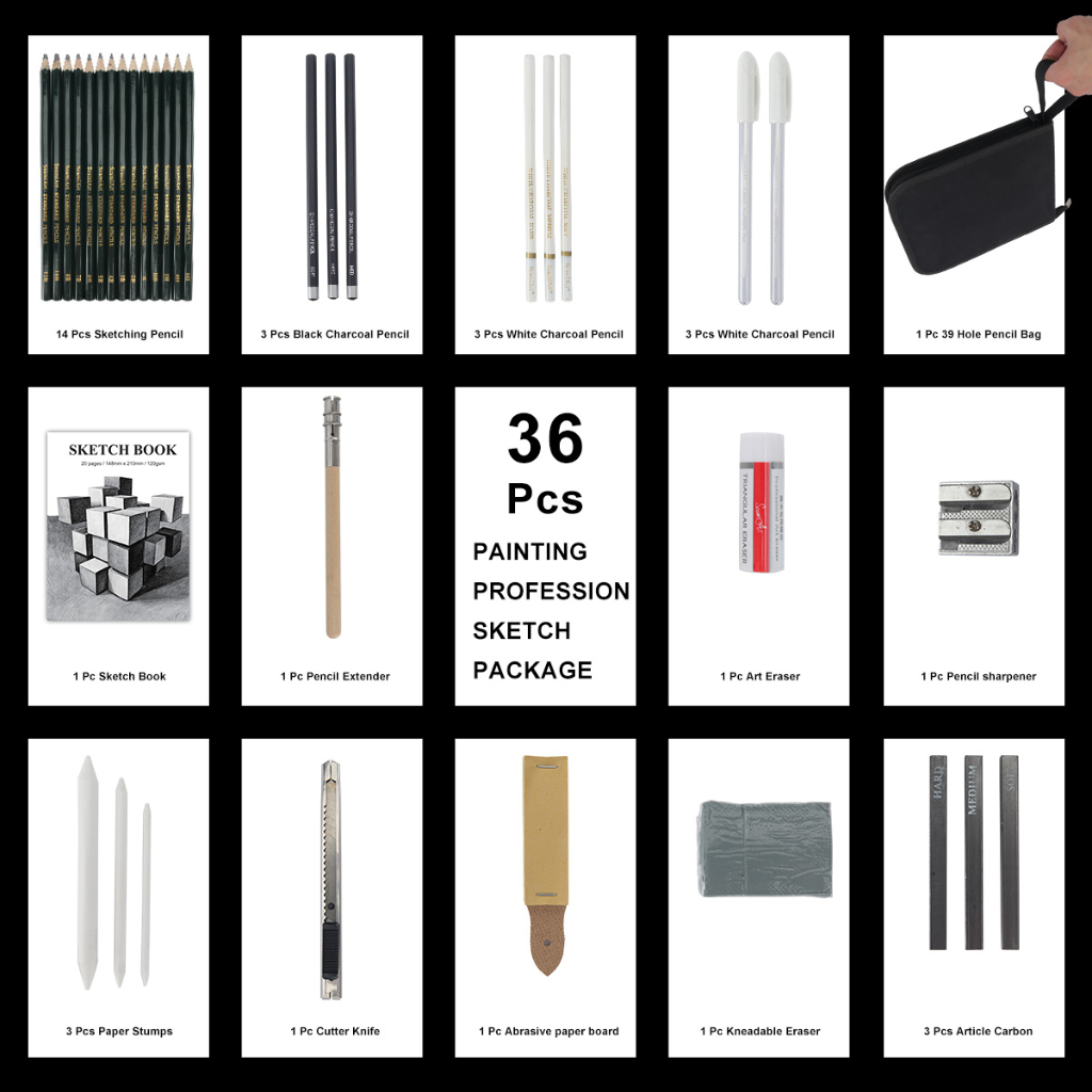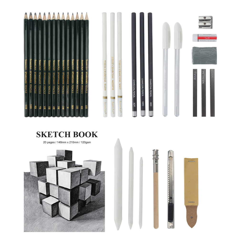 Seamiart 36pcs Drawing Sketch Set with Charcoal Pencils 6H-12B Pencils Sketch Book Art Suppliers Stationery