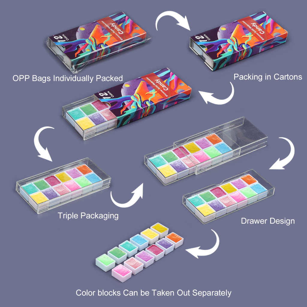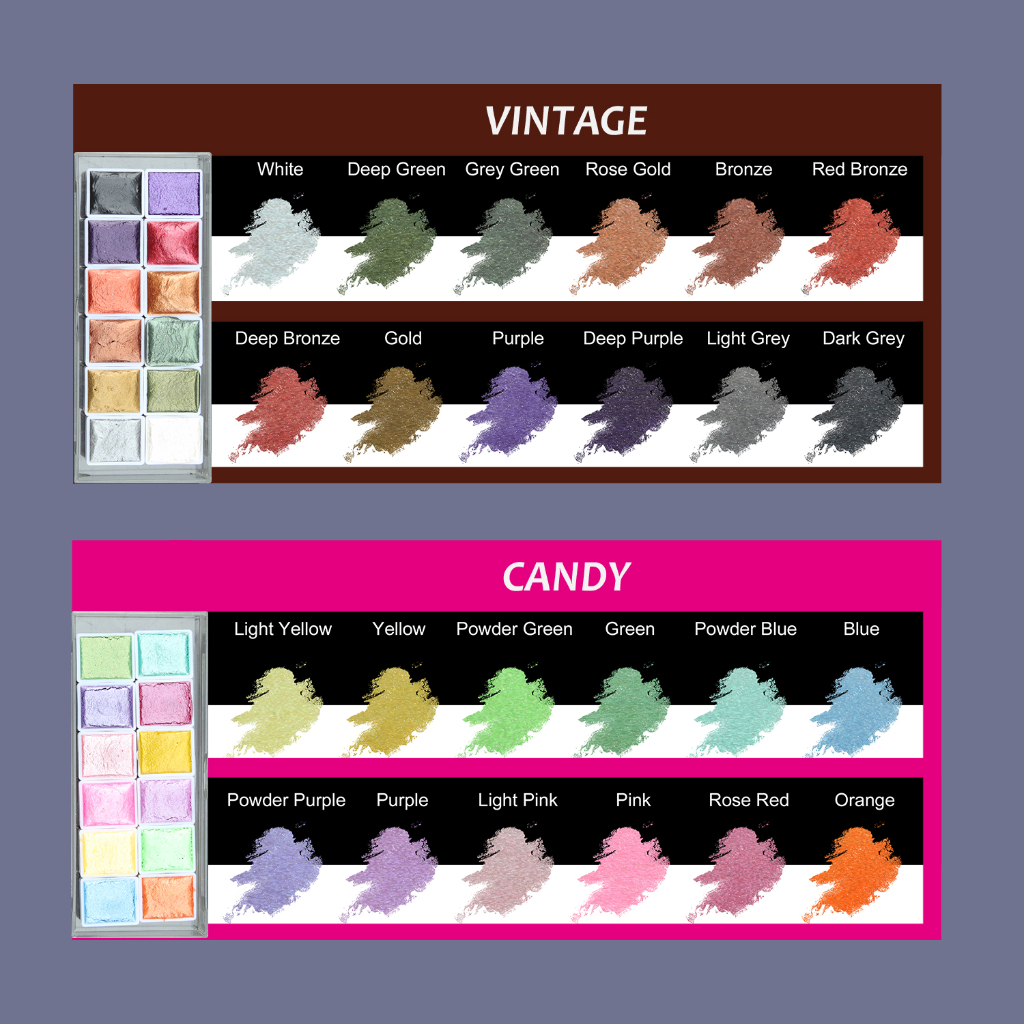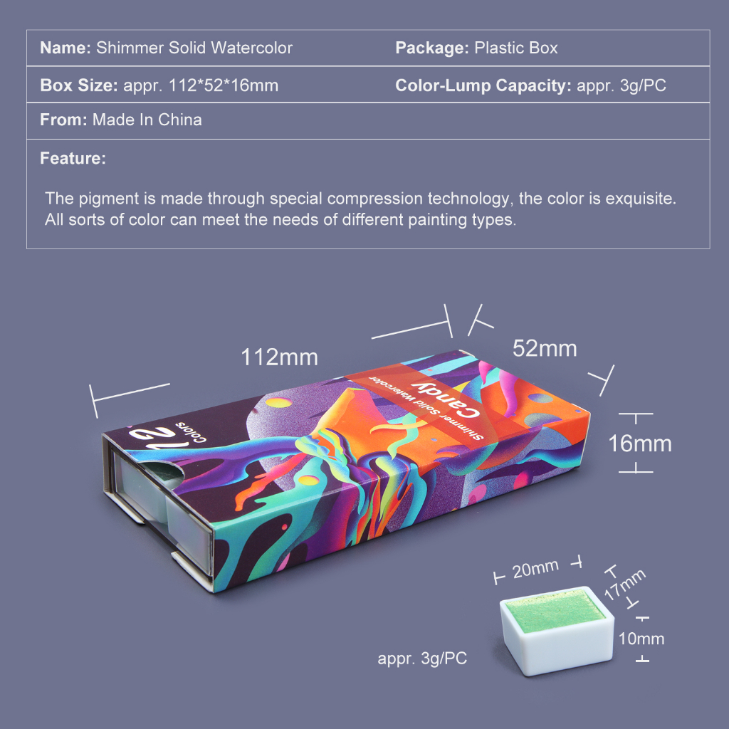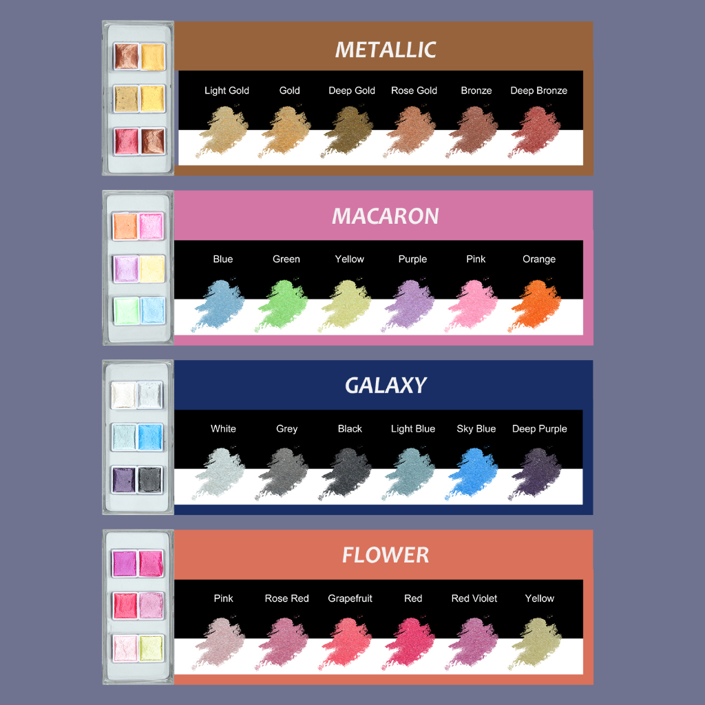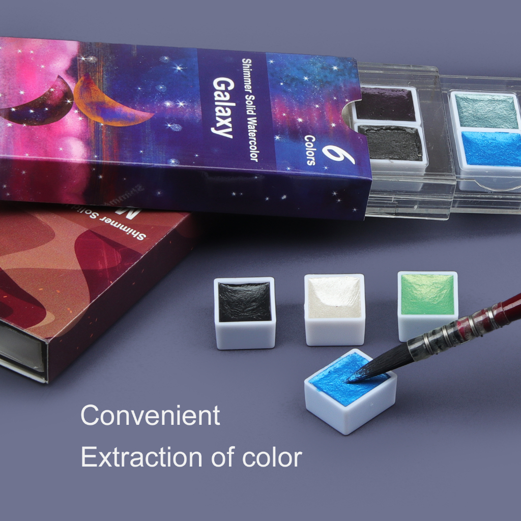Seamiart 6/12 Colors Glittery Metallic Solid Watercolor Set Portable Half Pans for Painting/Gel Nail