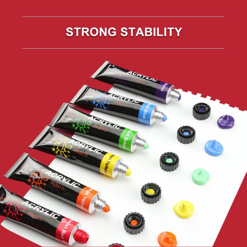 Seamiart [Ready Stock] 12/24 Colors Acrylic Paint Set 12ml Tube Acylic Paint with 10pcs Painting Brush for Wall Drawing Cloth Shoes DIY 丙烯颜料 墙绘 手绘