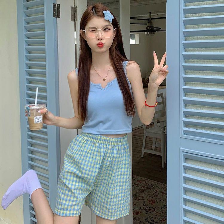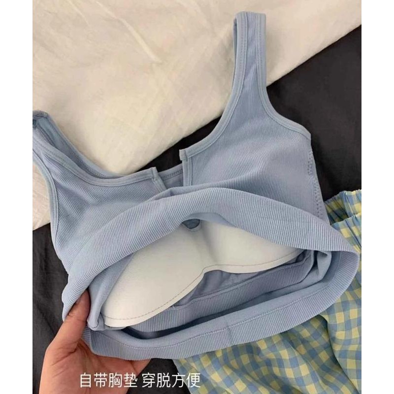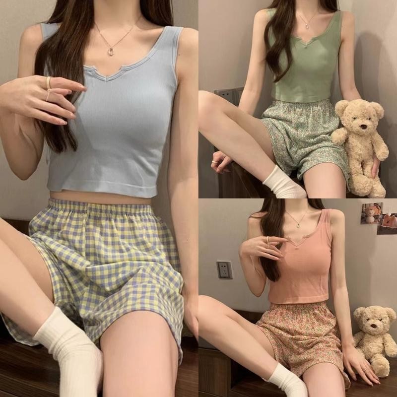 Seamless chest cushion camisole sleepwear women's sports vest sweet floral shorts can be worn as outerwear home suit set