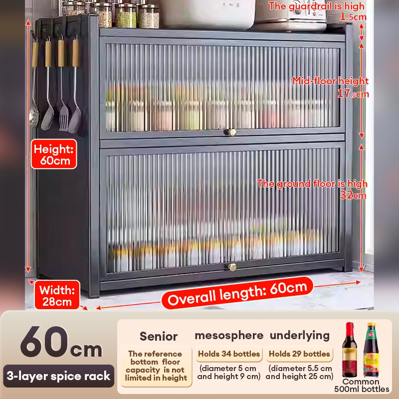 Seasoning Rak Kitchen Countertop shelf with Cover Dustproof spice Household use Storage Cabinet置物柜