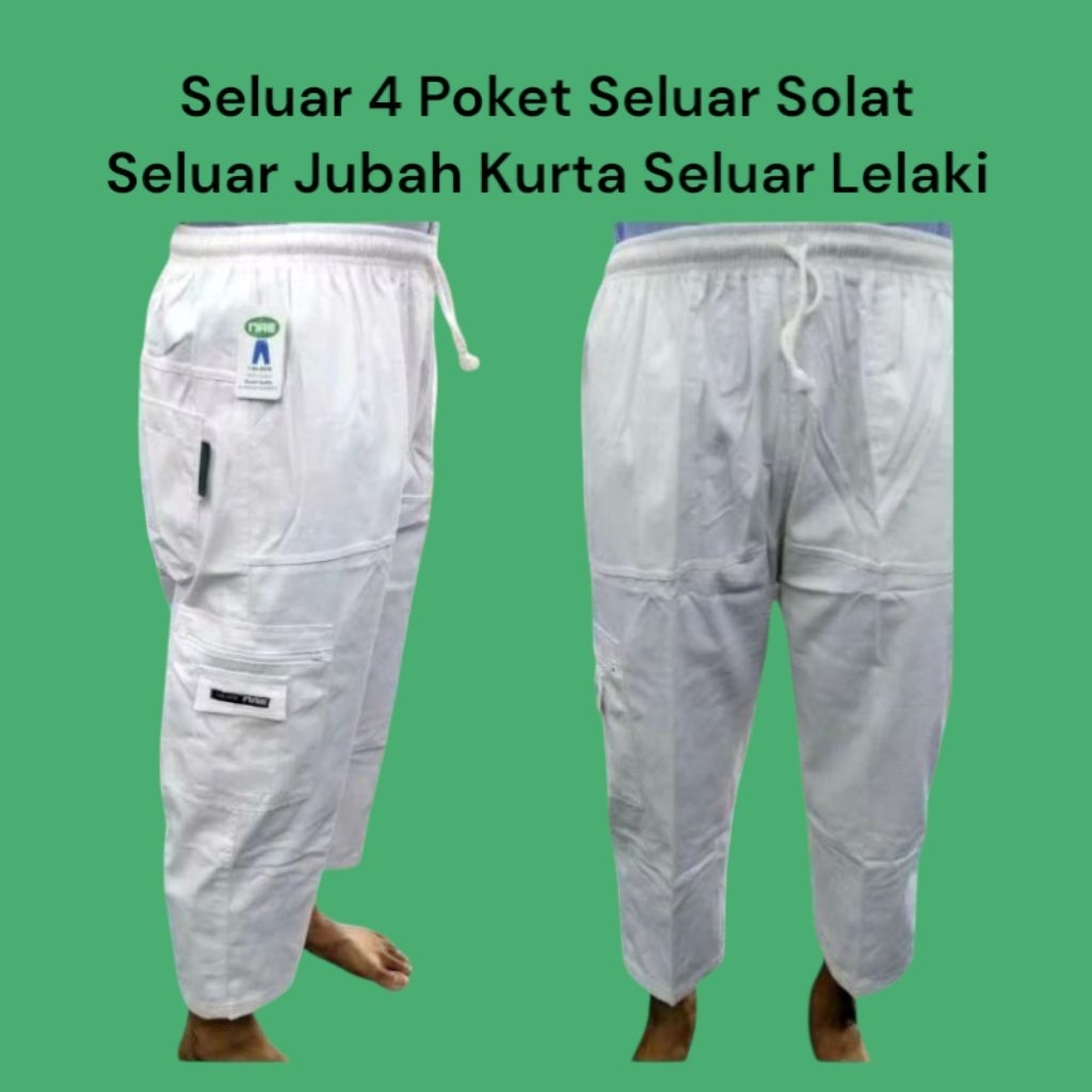 Seluar 4 Poket Kain Cotton Sejuk Seluar Solat Seluar Jubah Kurta