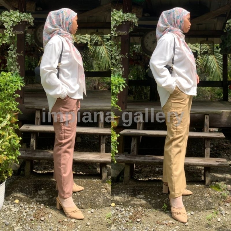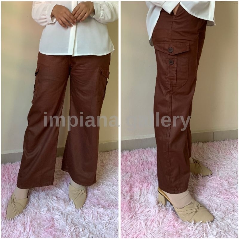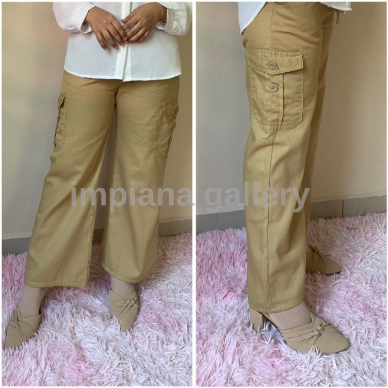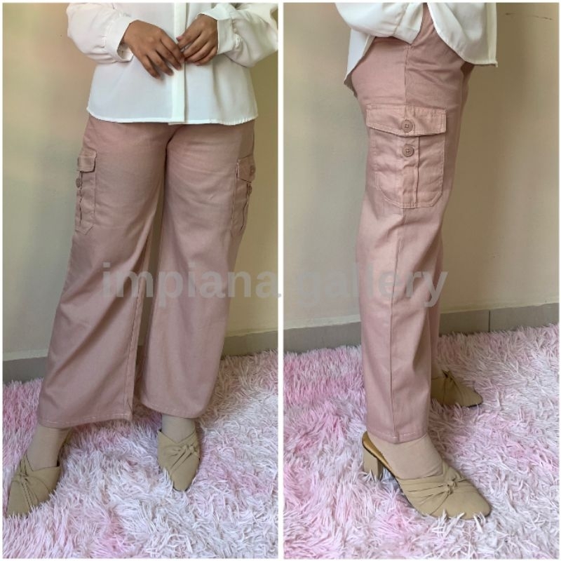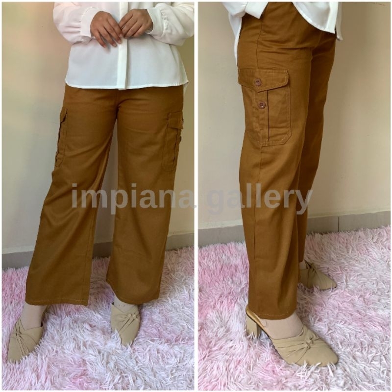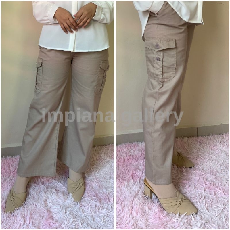Seluar Cargo Cotton Palazzo Stylish Soft Cotton Untuk Perempuan | Straight Cut 4 Pockets Ready Stock Size S - 3XL