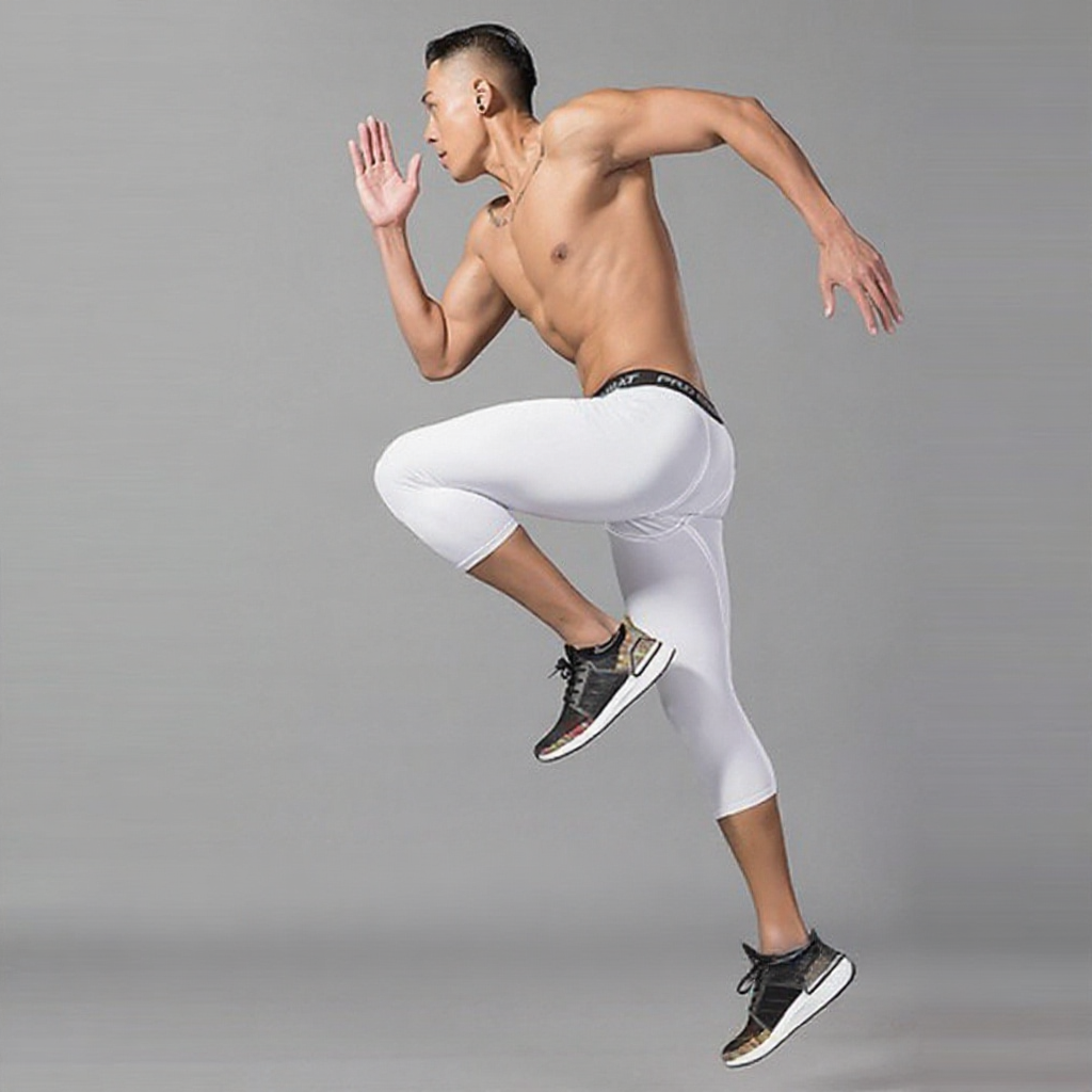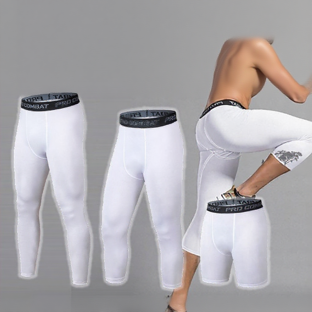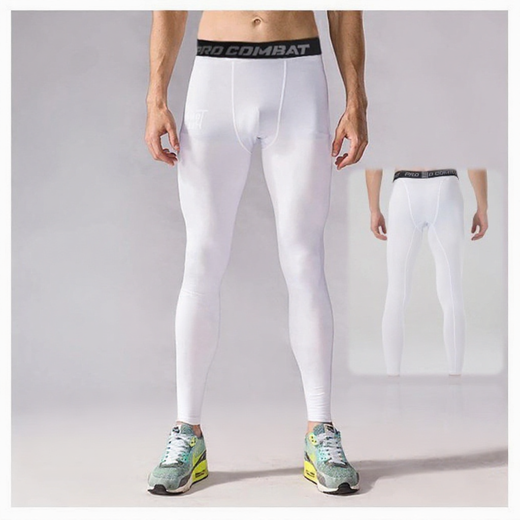 Seluar Tight Lelaki Putih 3 Suku Long Short Running Tights Men Legging Seluar Fit Lelaki Bola Sepak Tight Pant Man White