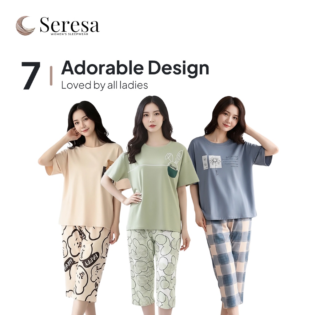 SERESA Women Cartoon Pyjamas Set Short Sleeve Comfy Homewear Sleepwear Plus Size