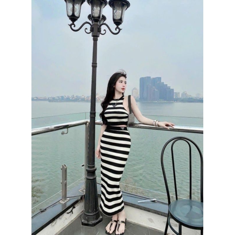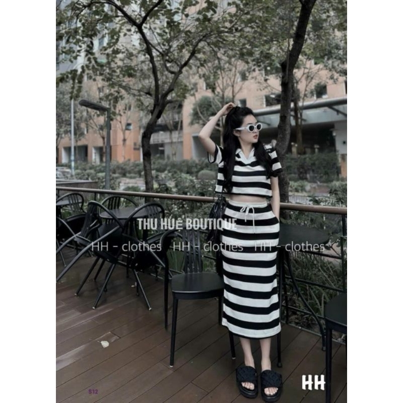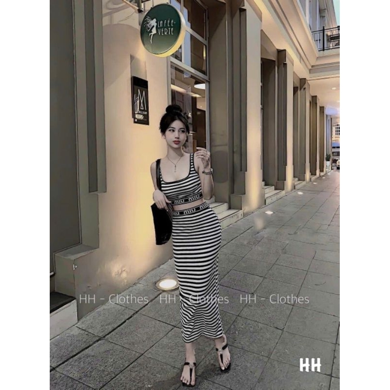 SET LONG STRIPED SKIRT + 2-STRING SHIRT WITH LOGO -ly alohashop91