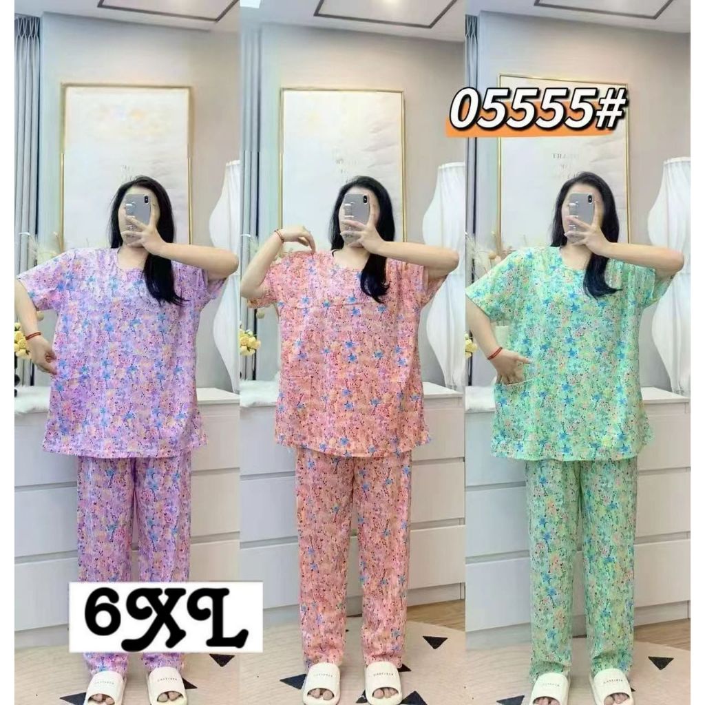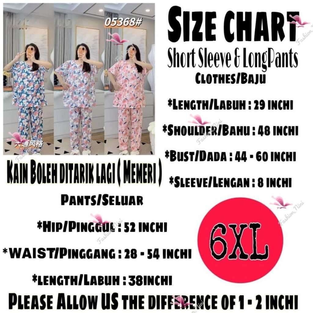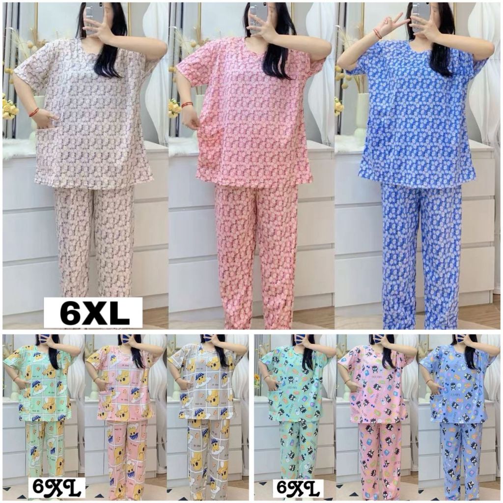 Set Piyama Wanita Dolly Saiz Besar 6XL Lengan Pendek & Seluar Panjang Viral Cotton Polyester Memeri Kain Lembut Best Sel
