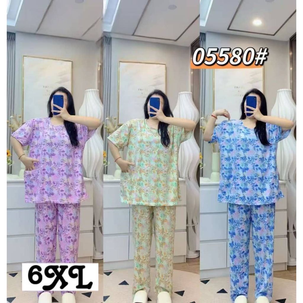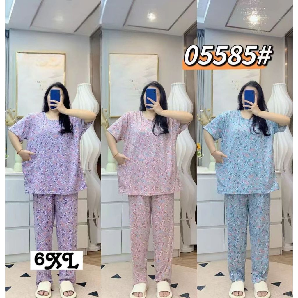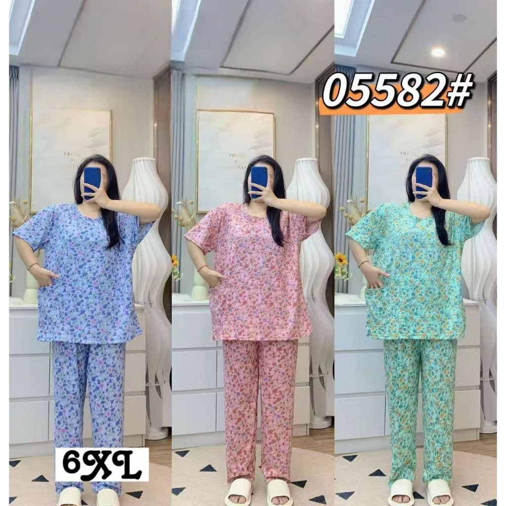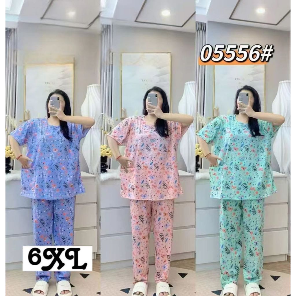 Set Piyama Wanita Dolly Saiz Besar 6XL Lengan Pendek & Seluar Panjang Viral Cotton Polyester Memeri Kain Lembut Best Sel