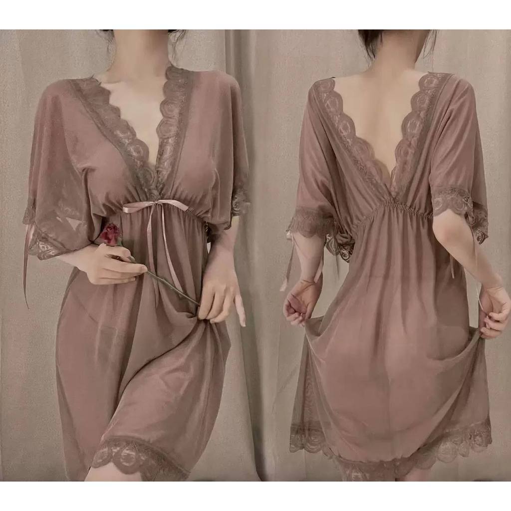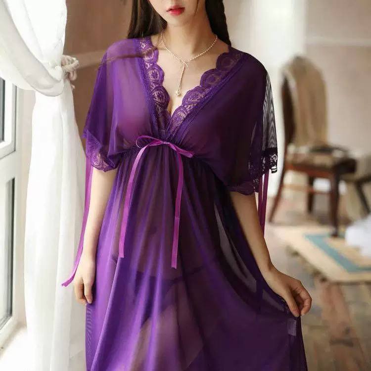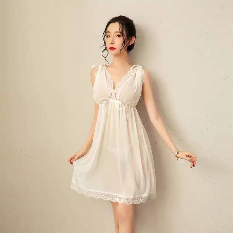 Sexy Mesh Lingerie Set | Transparent Lace Babydoll Dress | Plus Size Nightwear | Baju Tidur Seksi Wanita