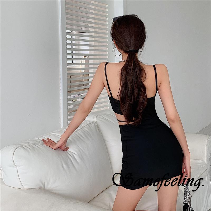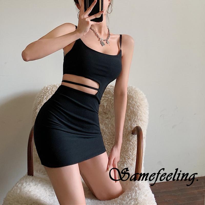 SF♫Women´s Sexy Bodycon Mini Dress Sleeveless Spaghetti Strap Solid