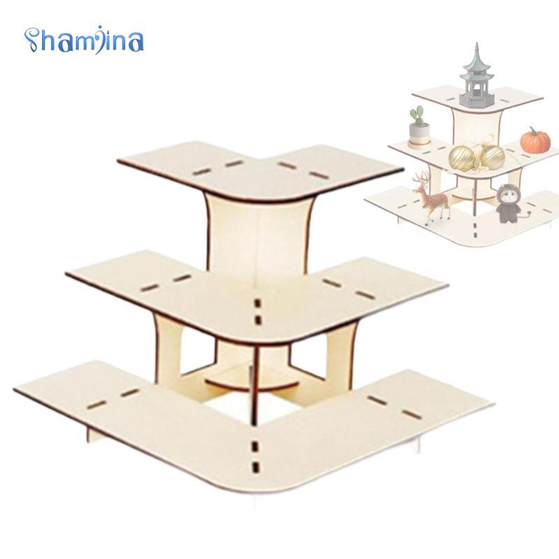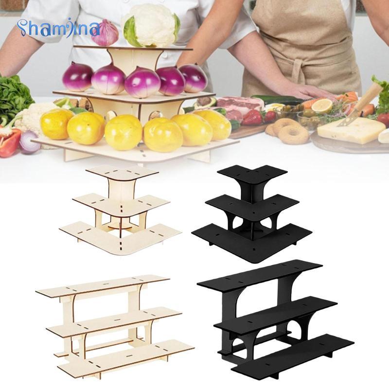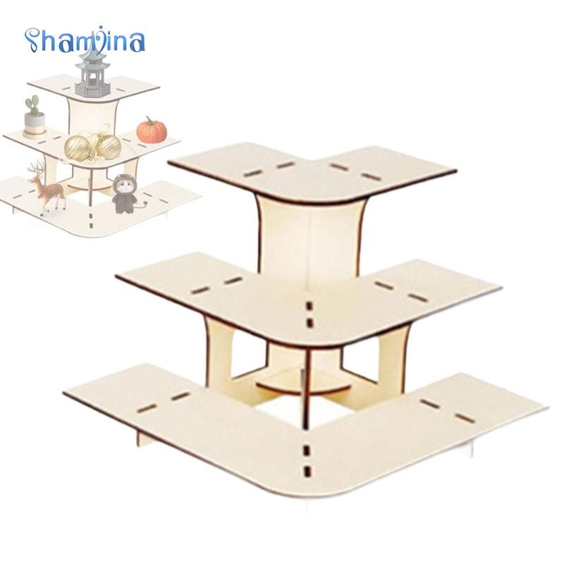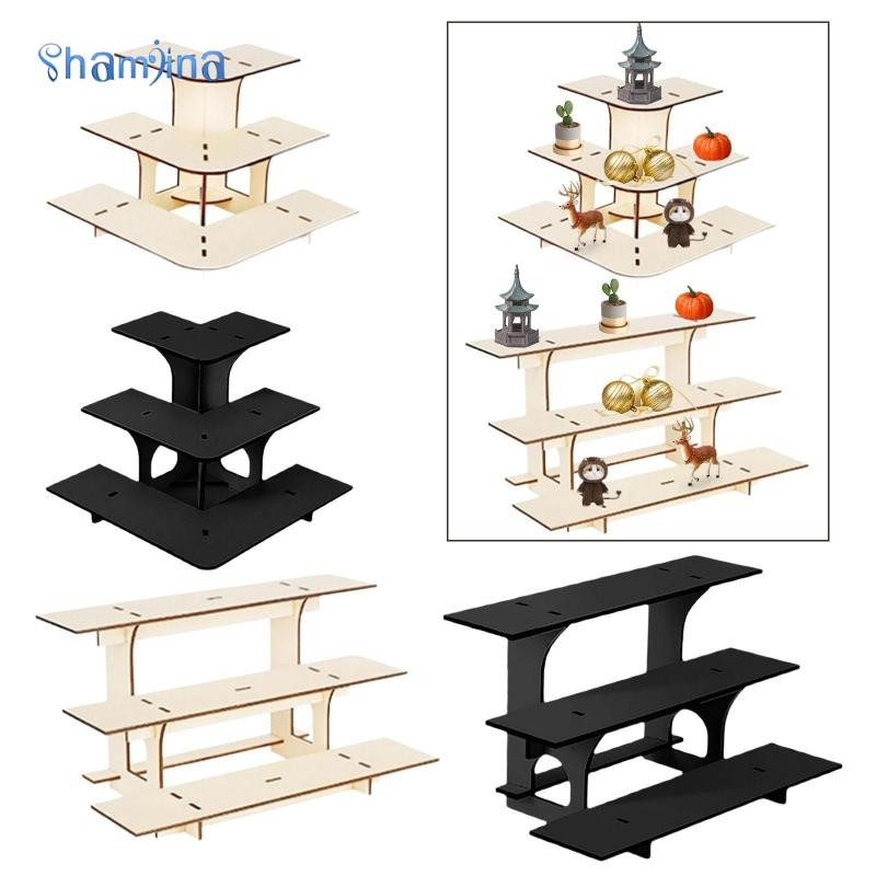 Shamjina 3 Tier Corner Tiered Display Stand for Products Wooden Display Shelf Portable