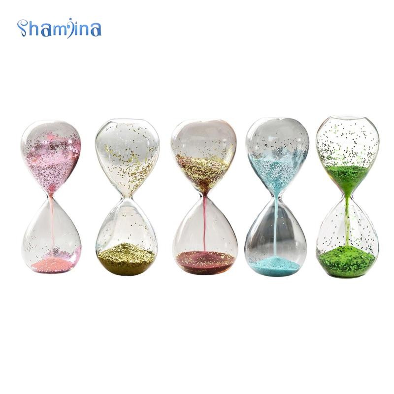 Shamjina Glitter Sand Glass Timer Hourglass Sand Timer Home Handmade Craft Tabletop Decoration Timer for Birthday Gift Faimly Children