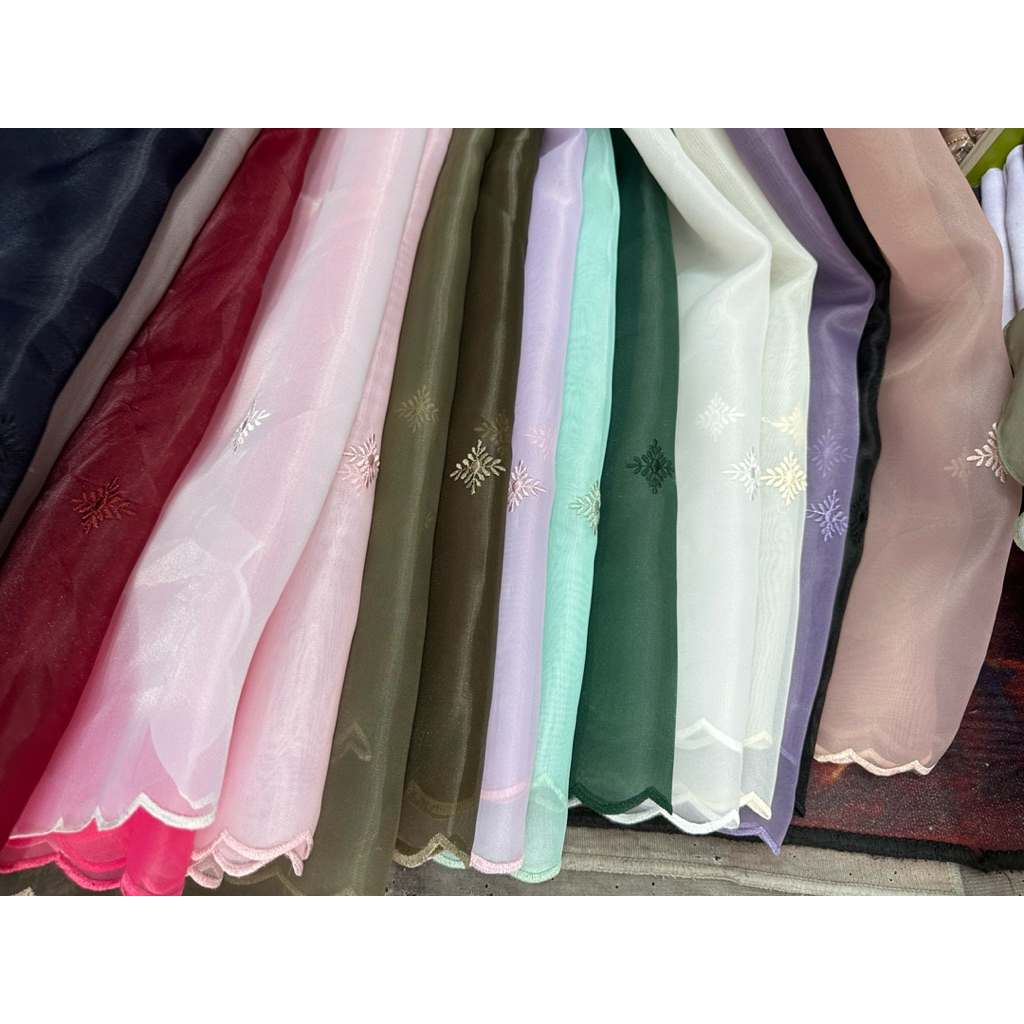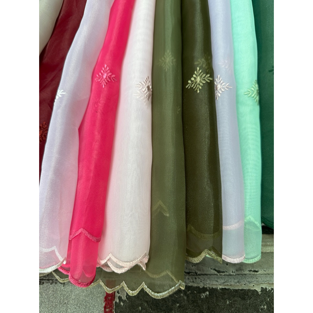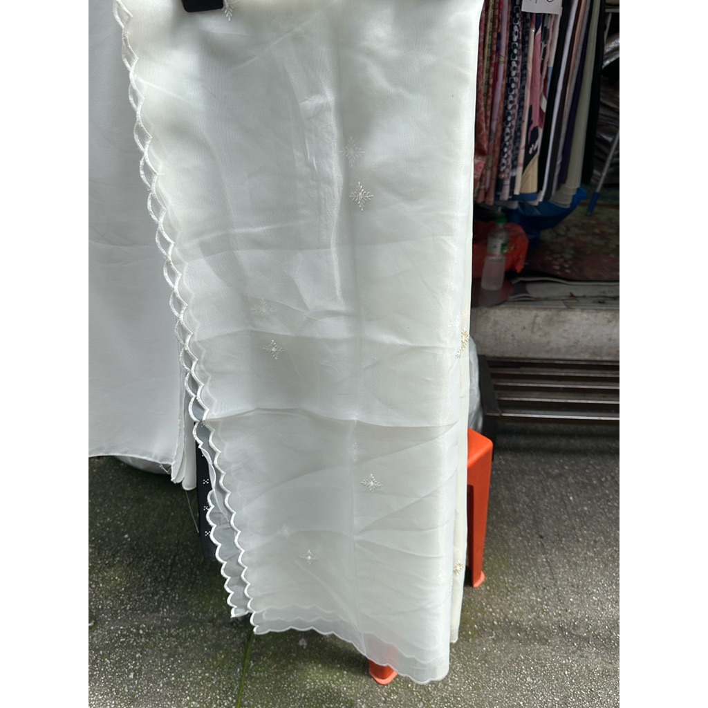 Shawl Oragandi Embroidered Malay Organza Shawl Scarf Klasik look Selendang Bahu Sulam / Premium Veil organza Offwhite
