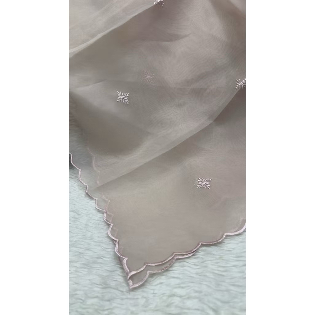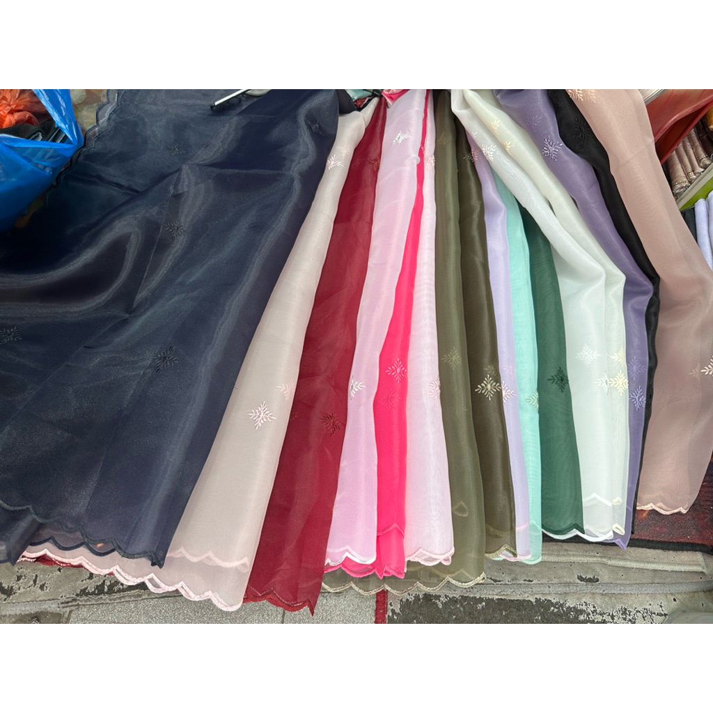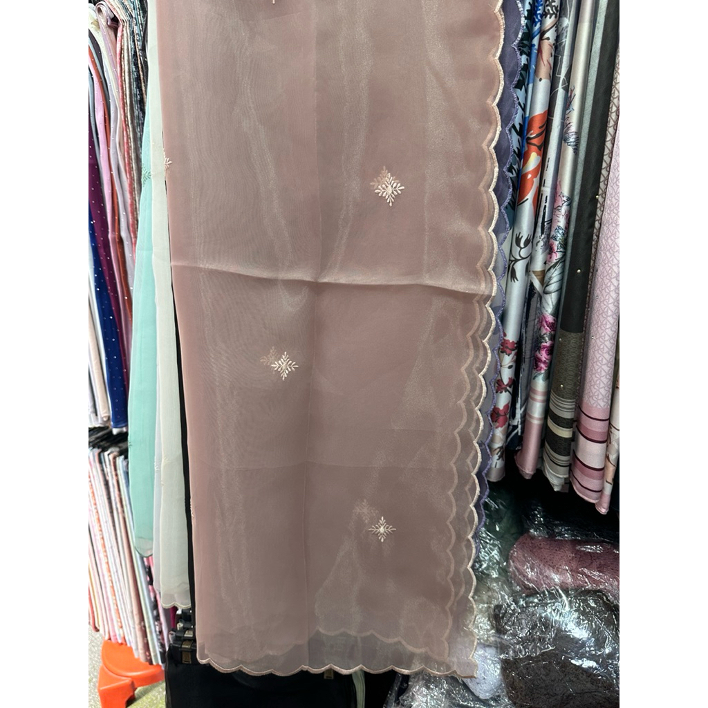 Shawl Oragandi Embroidered Malay Organza Shawl Scarf Klasik look Selendang Bahu Sulam / Premium Veil organza Offwhite