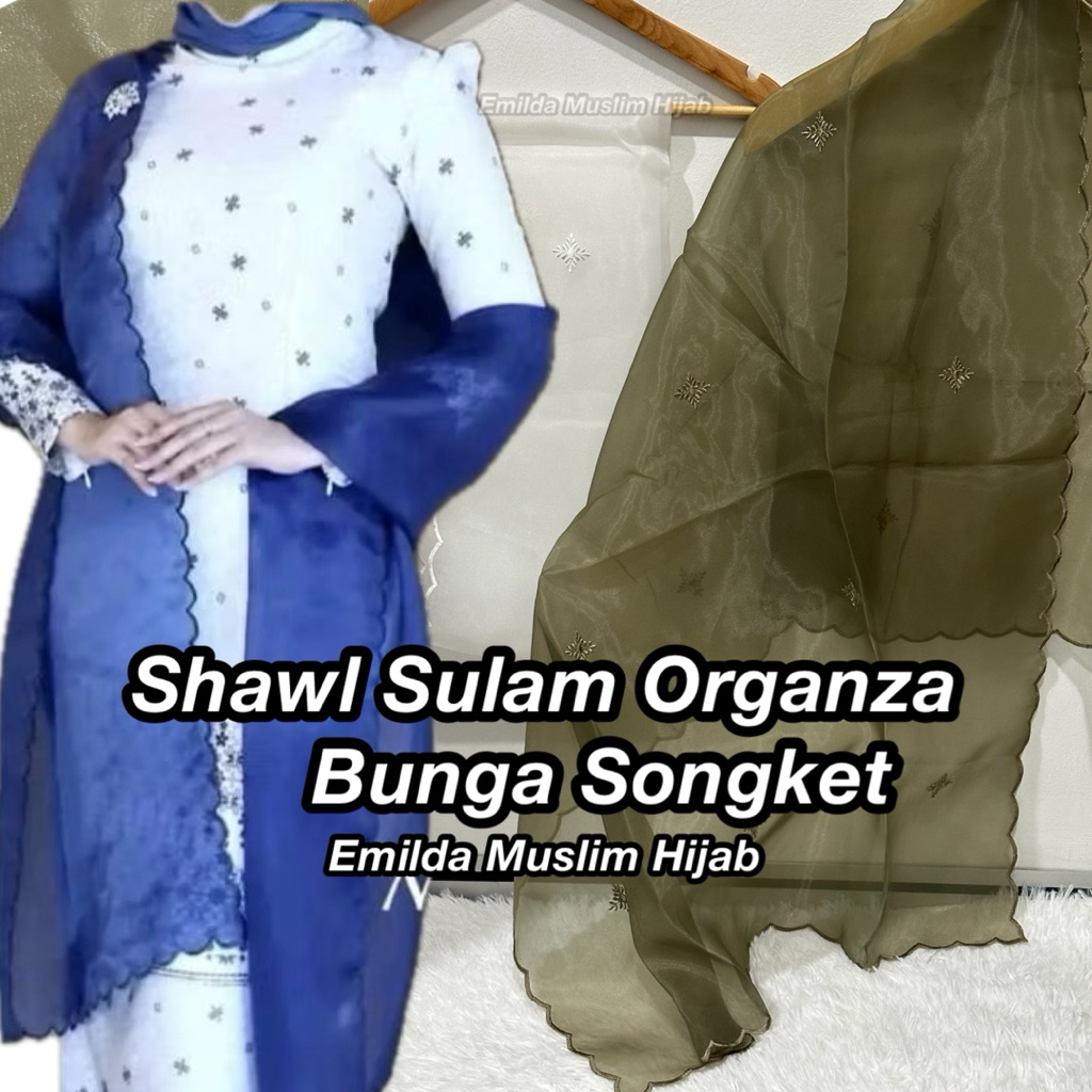 Shawl Organza Sulam Bunga Songket Malay Organza /Embroidery Organza Veil Pashmina
