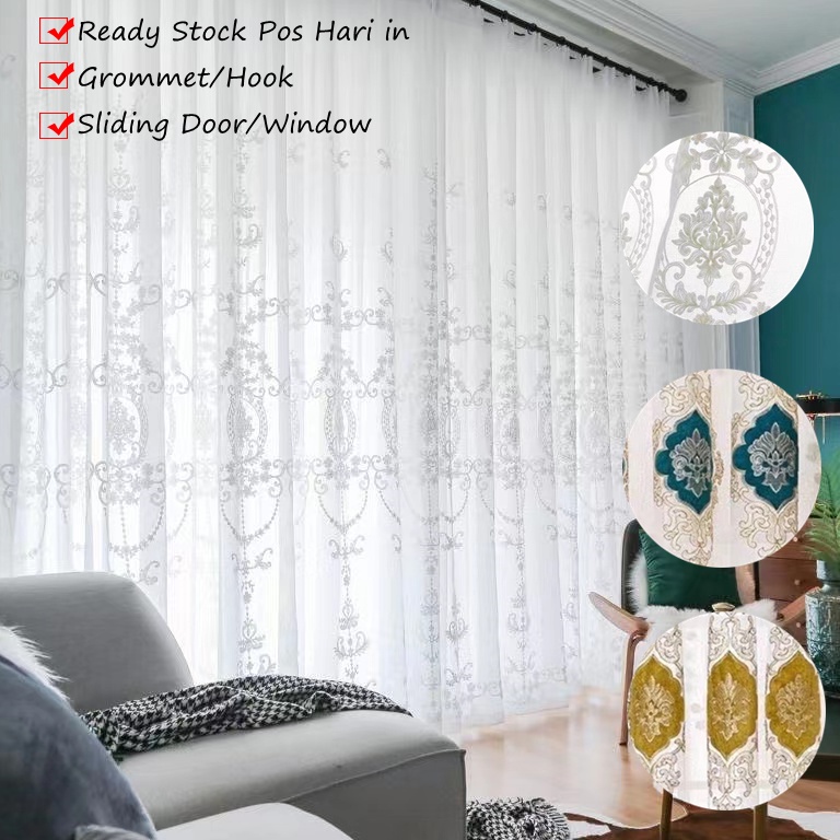 Sheer Day Curtain Langsir for Sliding Door Tulle Curtain Langisr Voile Drapes Curtains for Living Room Bedroom Window Panel
